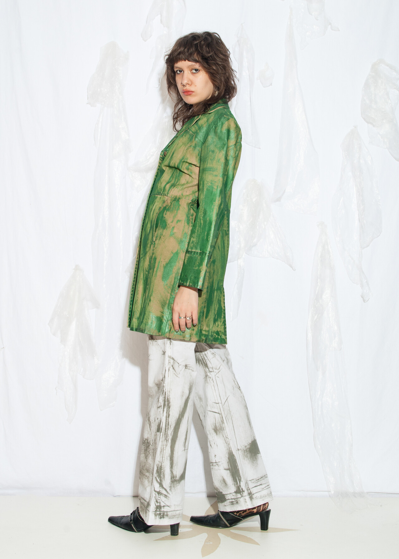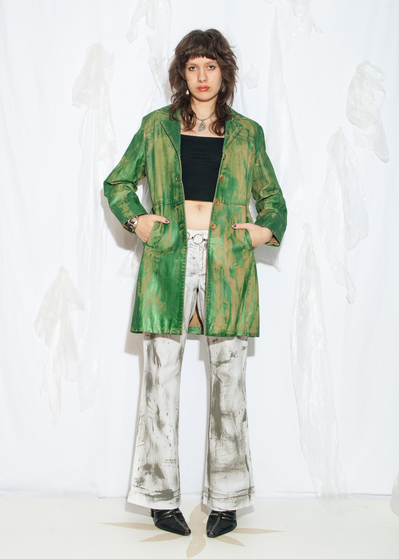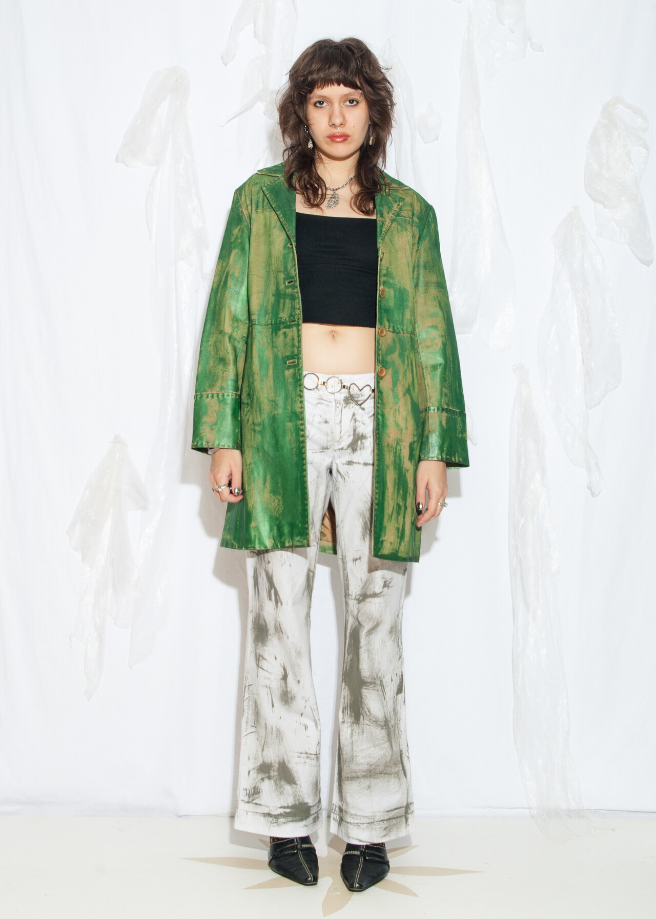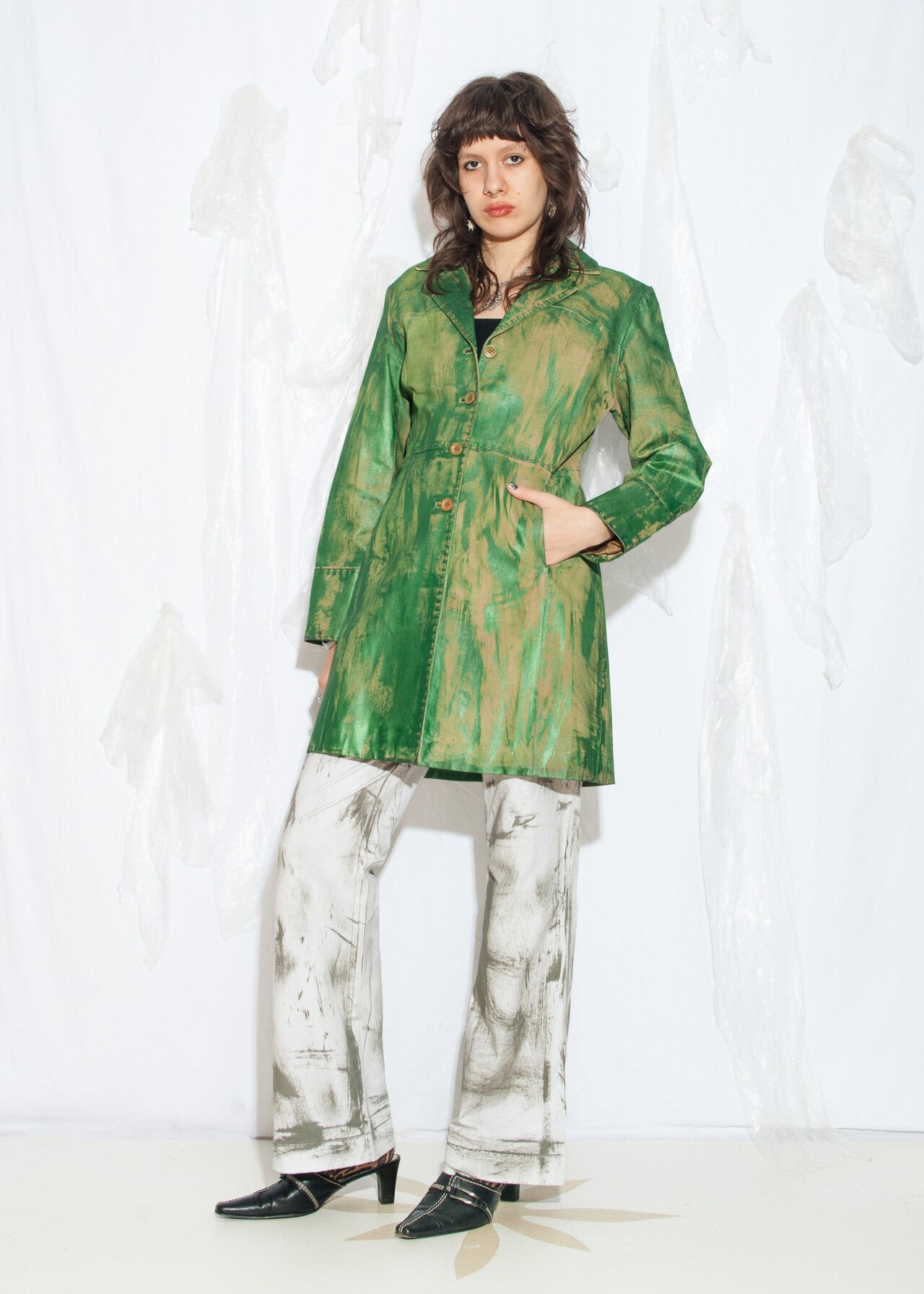 Be the first to review “Reworked Vintage Y2K Leather Coat in Hand-Painted Green” Cancel reply