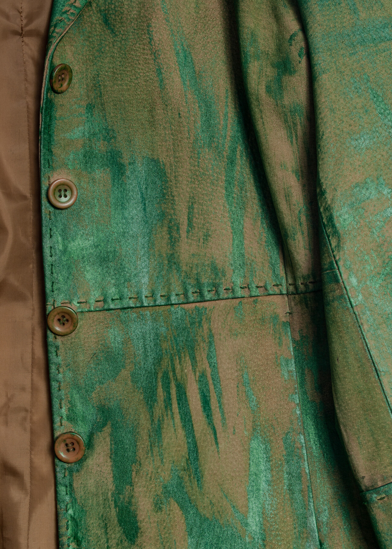 Reworked Vintage Y2K Leather Coat in Hand-Painted Green