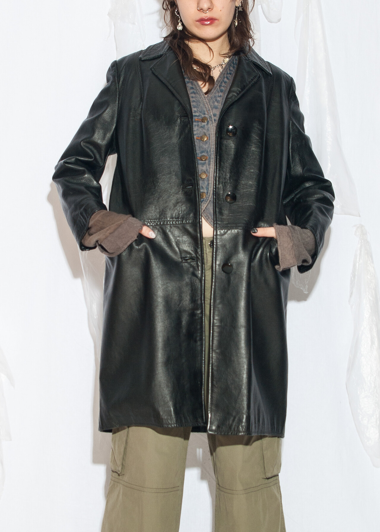 This vintage leather coat from 60s Hungary is the real leather blazer cut jacket your wardrobe’s been dreaming of. Slide into this black beauty and channel those groovy vibes!