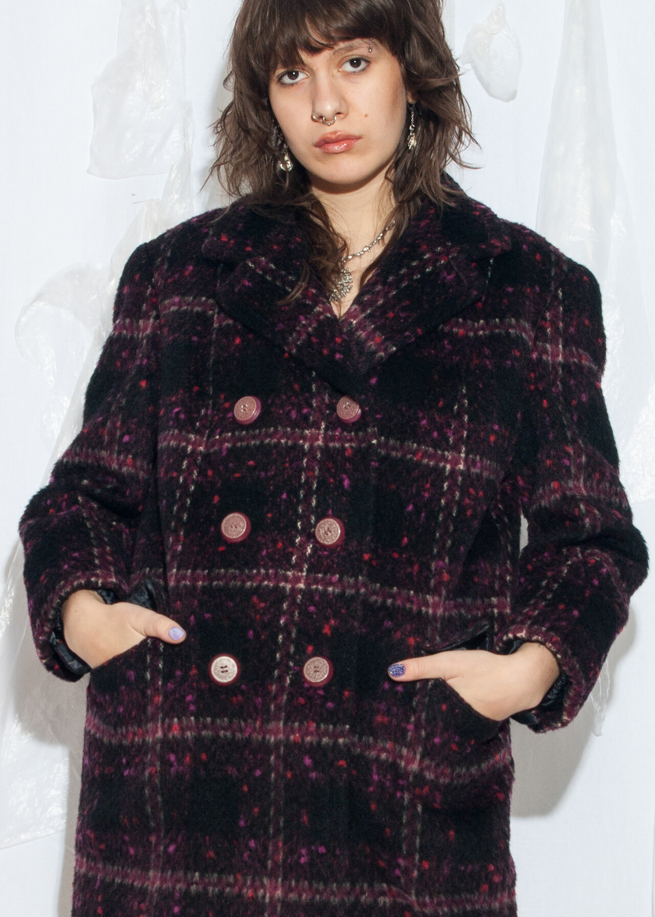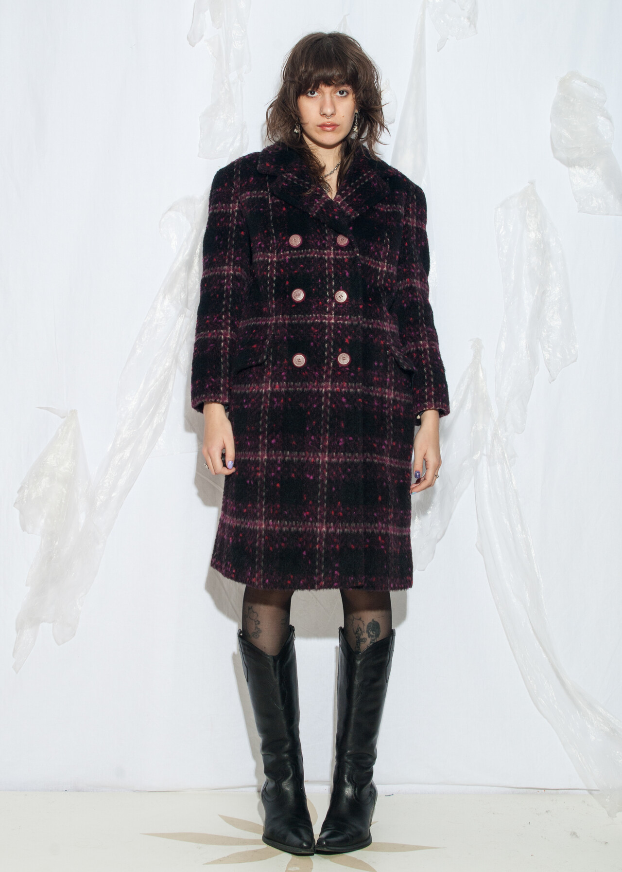 Tags: 60s vintage fashion, chunky winter coat, double breasted, mod, plaid wool coat, whimsi twee, whimsigoth, y2k grunge outfit