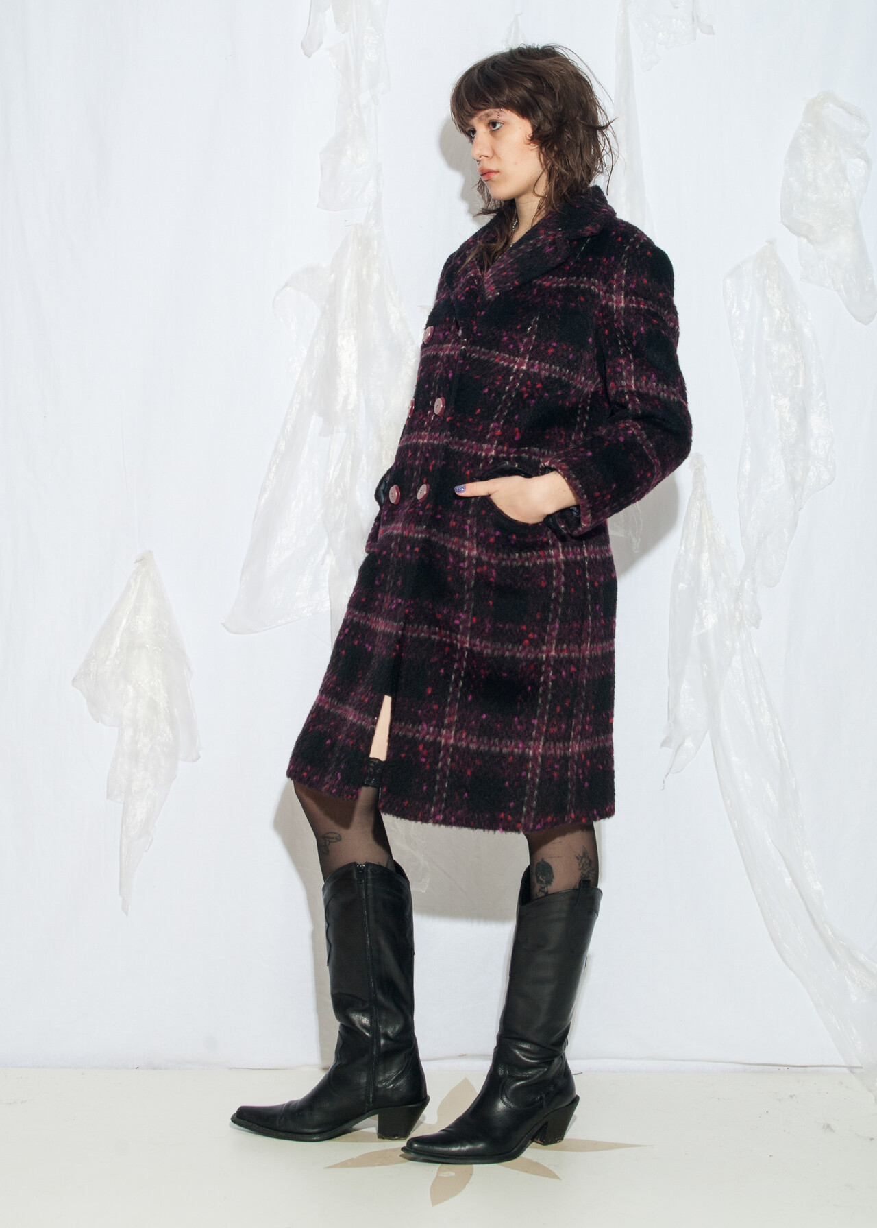 Vintage 60s Mod Plaid Wool Coat in Purple