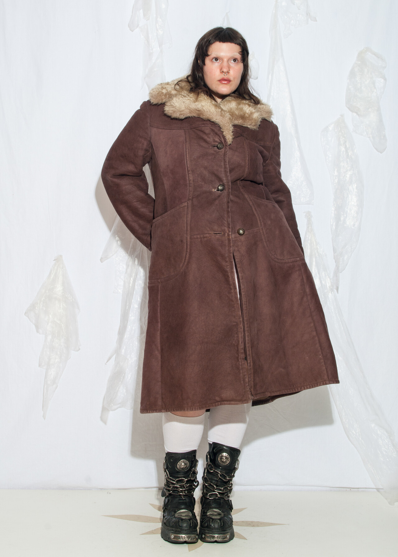 This 70s vintage shearling coat is like wrapping yourself in a cozy, Penny Lane-approved hug! Perfect for winter adventures, this brown Afghan coat will have you channeling all the retro sheepskin vibes.