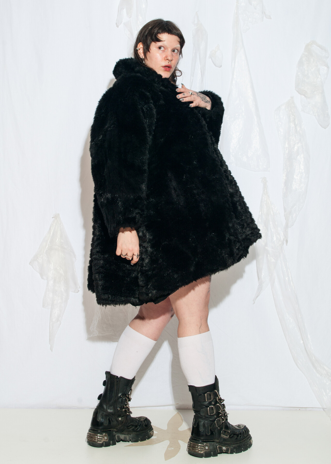 Vintage 80s Faux Fur Coat in Black