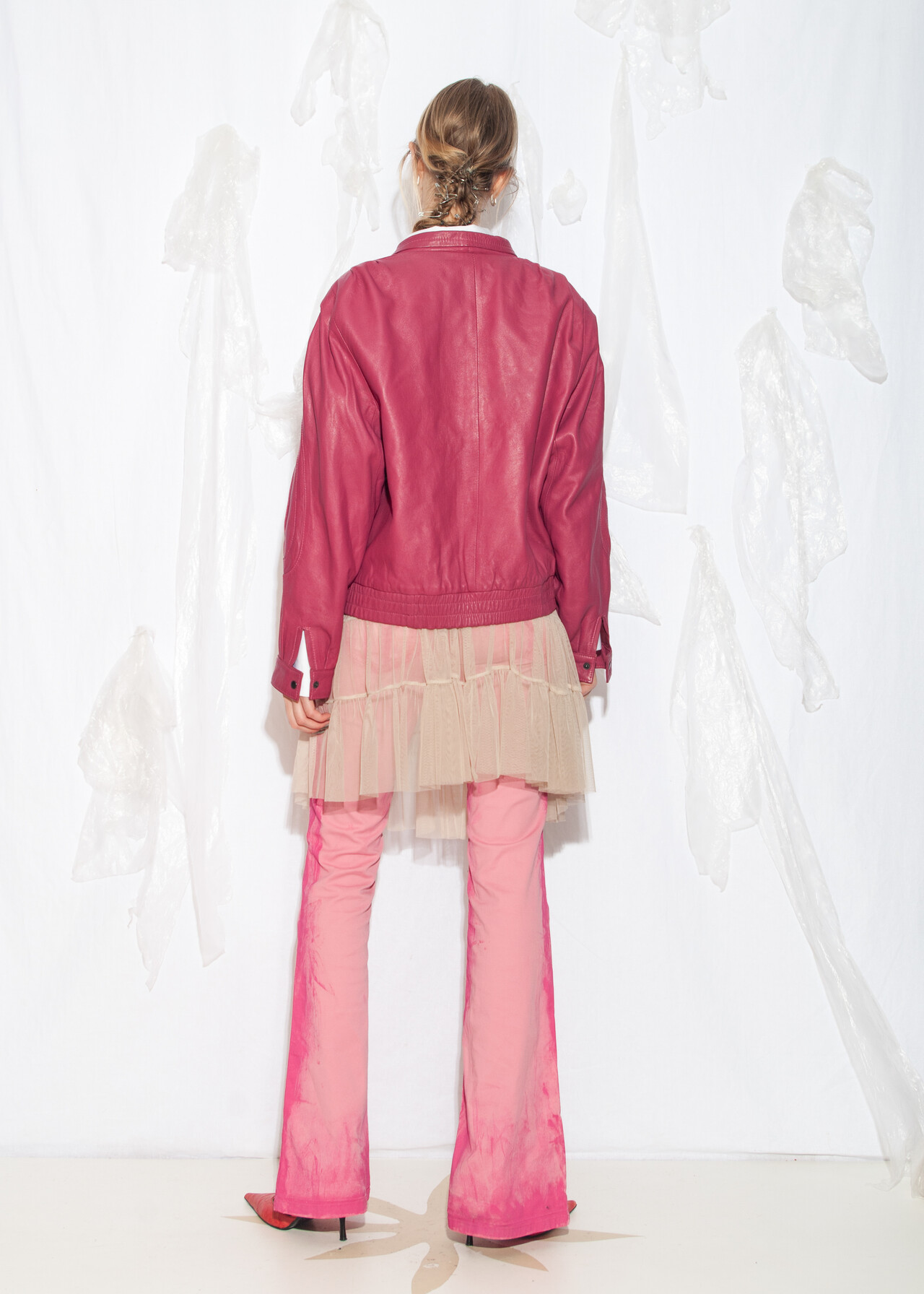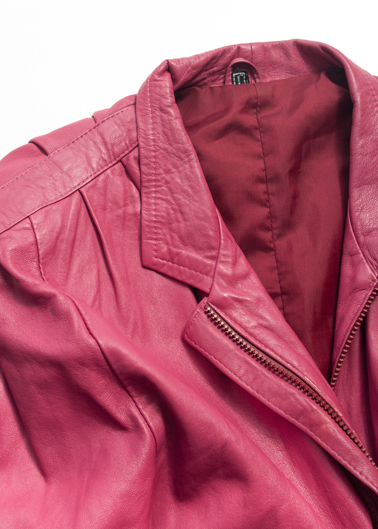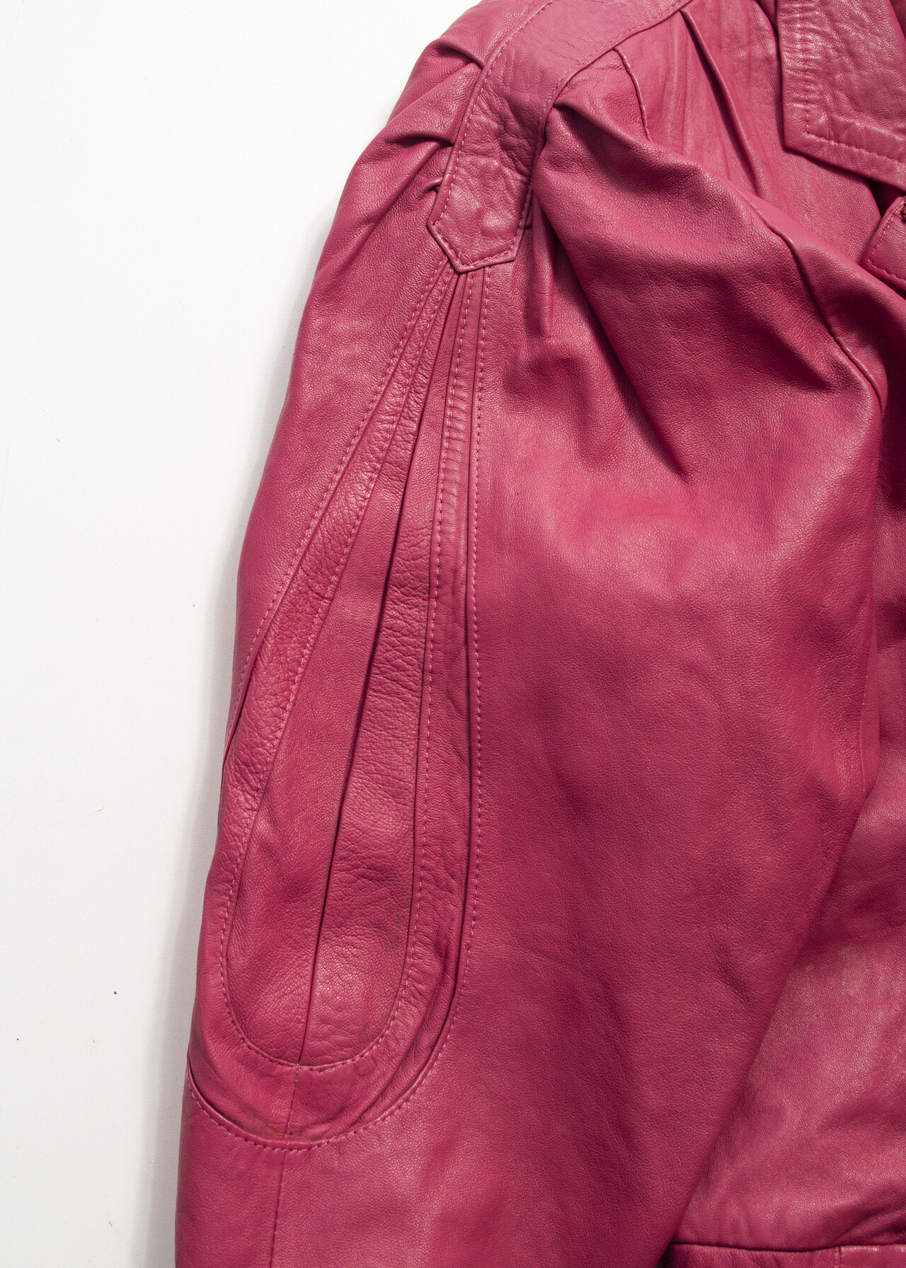 Tags: 80s vintage fashion, autumn womens coat, biker jacket, oversized jacket, pink bomber jacket, real leather coat, short coat, whimsi twee look, y2k grunge outfit