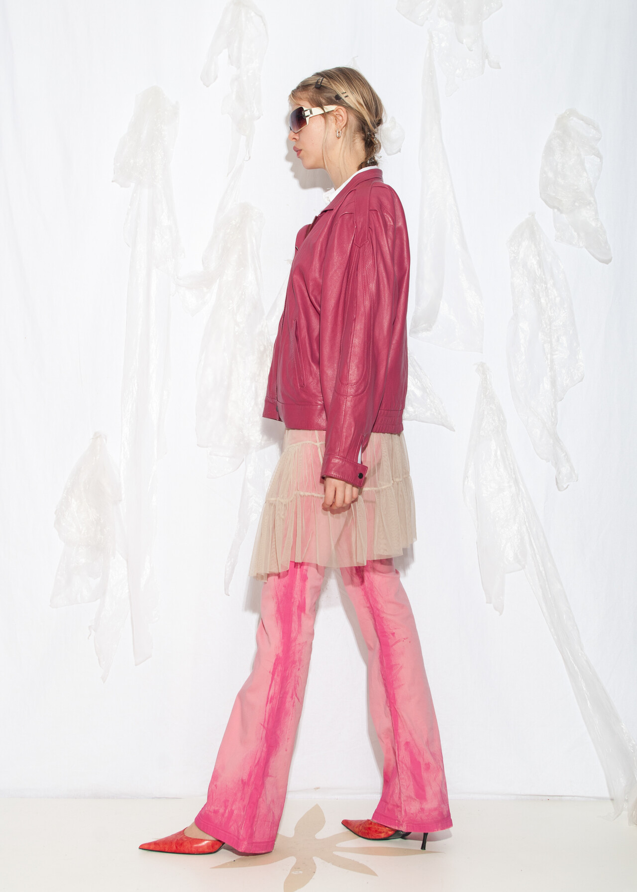 This 80s vintage pink bomber jacket is the oversized leather dreamcoat that’ll have you channeling your inner punk with a whimsi twee twist.