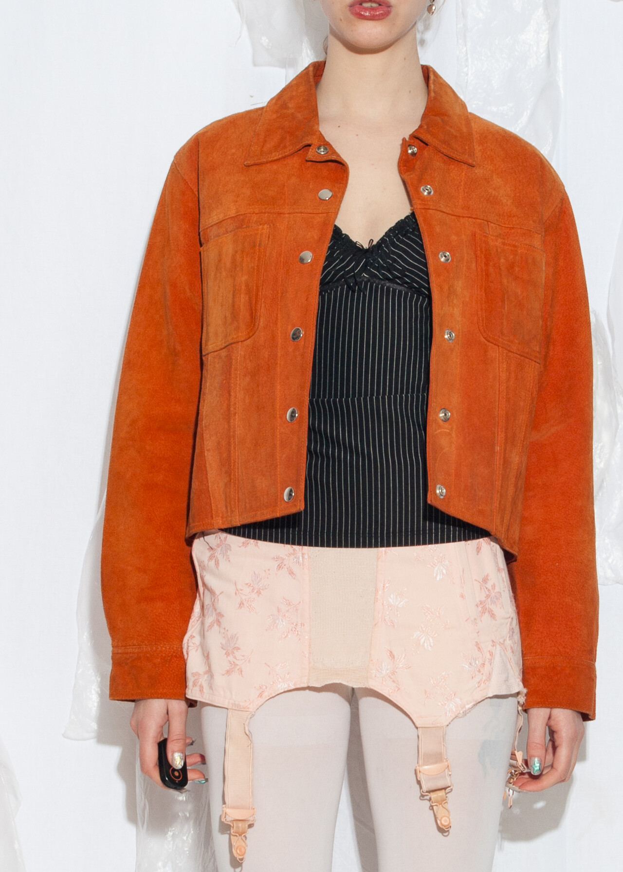 Tags: 80s vintage fashion, boxy fit coat, crop jacket, European vintage, grunge outfit, leather jacket, natural fabric, real suede, streetwear look, y2k style clothing