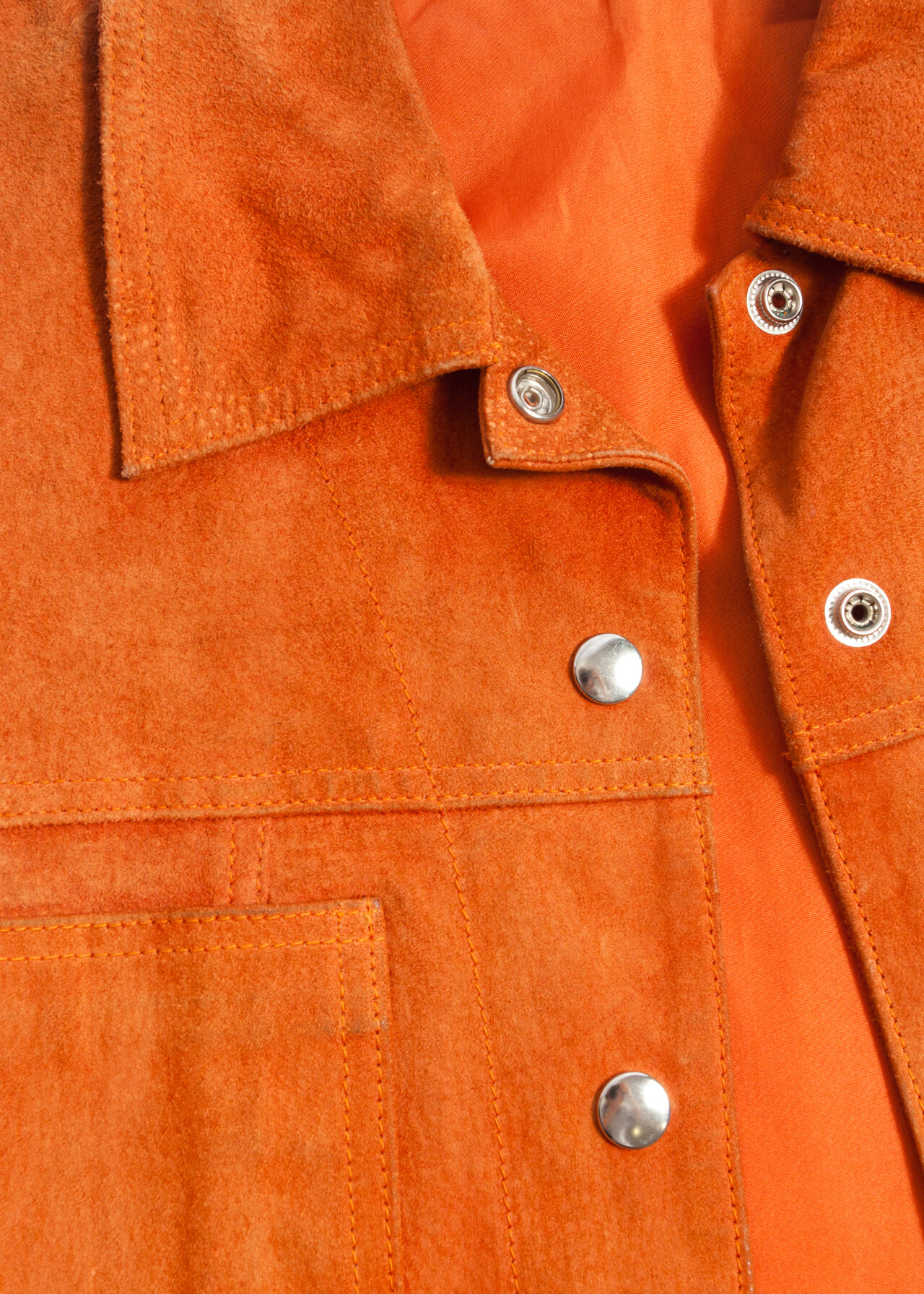 This 80s vintage leather jacket is a boxy fit coat in real suede that’s as orange as your favorite retro soda and twice as refreshing. Rock this crop jacket and you’ll feel like you’ve just stepped out of a totally tubular time machine!