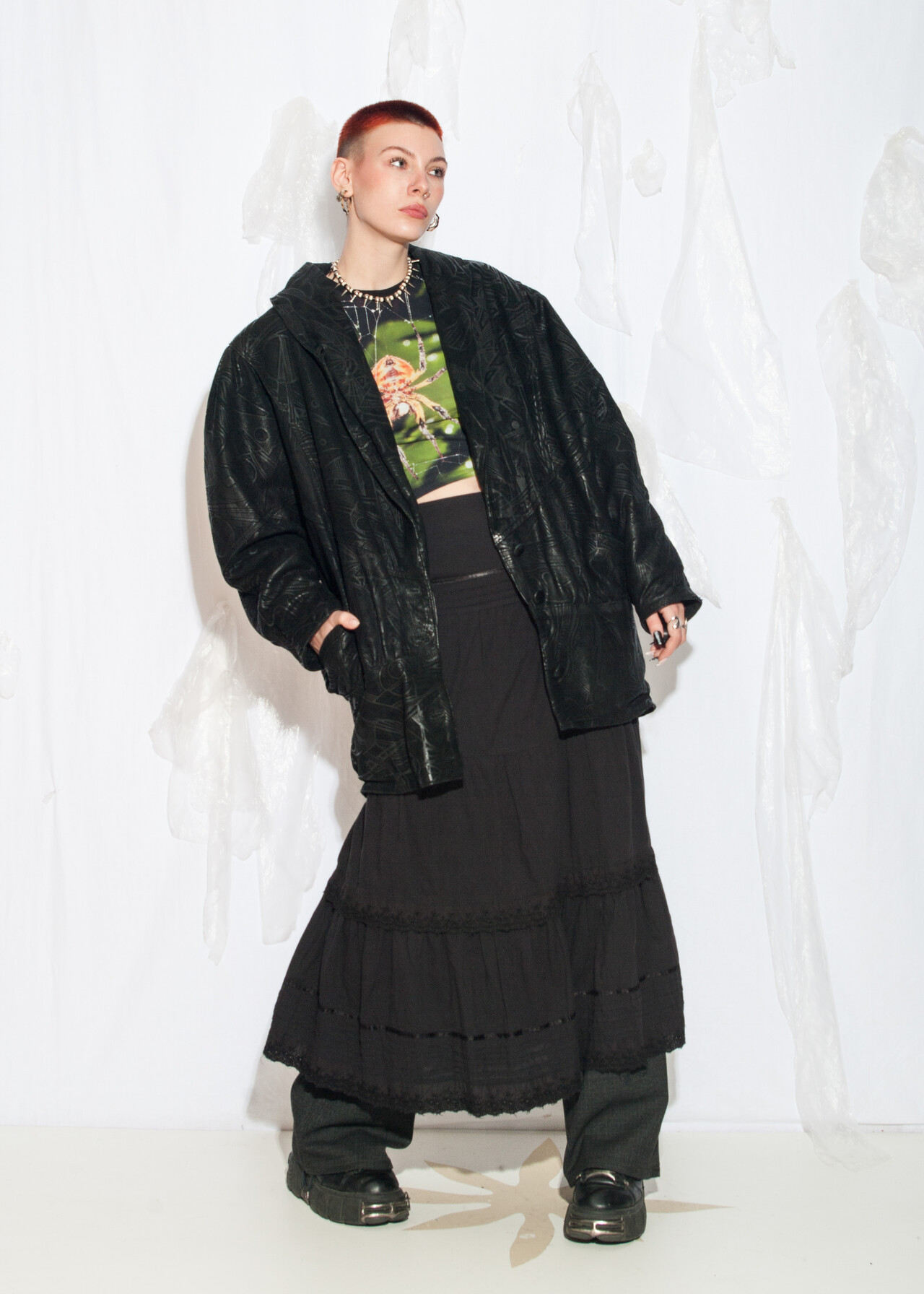 Tags: 00s streetwear, 80s vintage fashion, chunky outerwear, European vintage, made in Italy, oversized jacket, real leather coat, whimsigoth, y2k grunge outfit