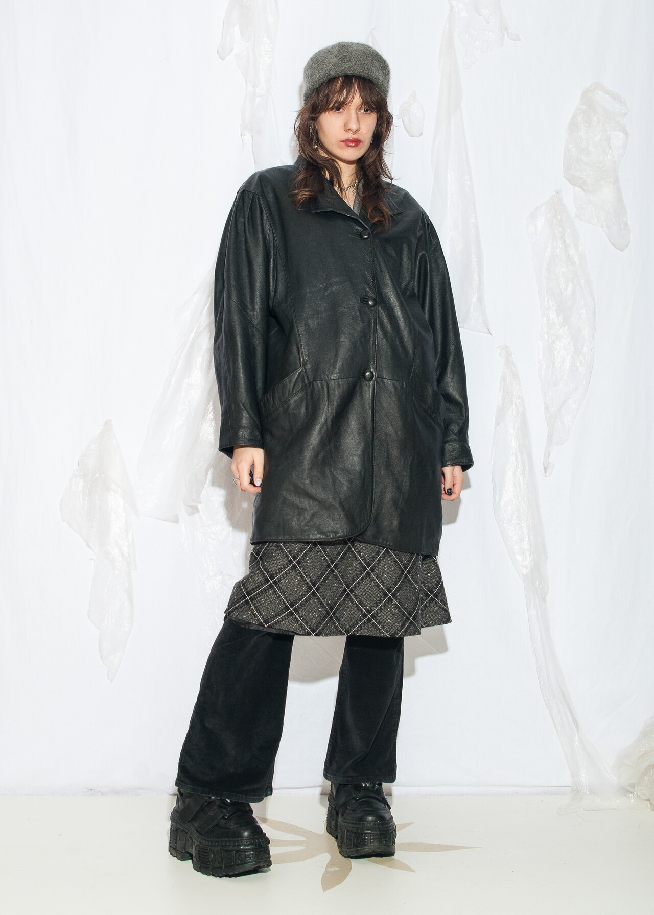This oversized 80s vintage coat is your ticket to grunge outfit glory, with real leather so authentic it might just start playing synthwave.