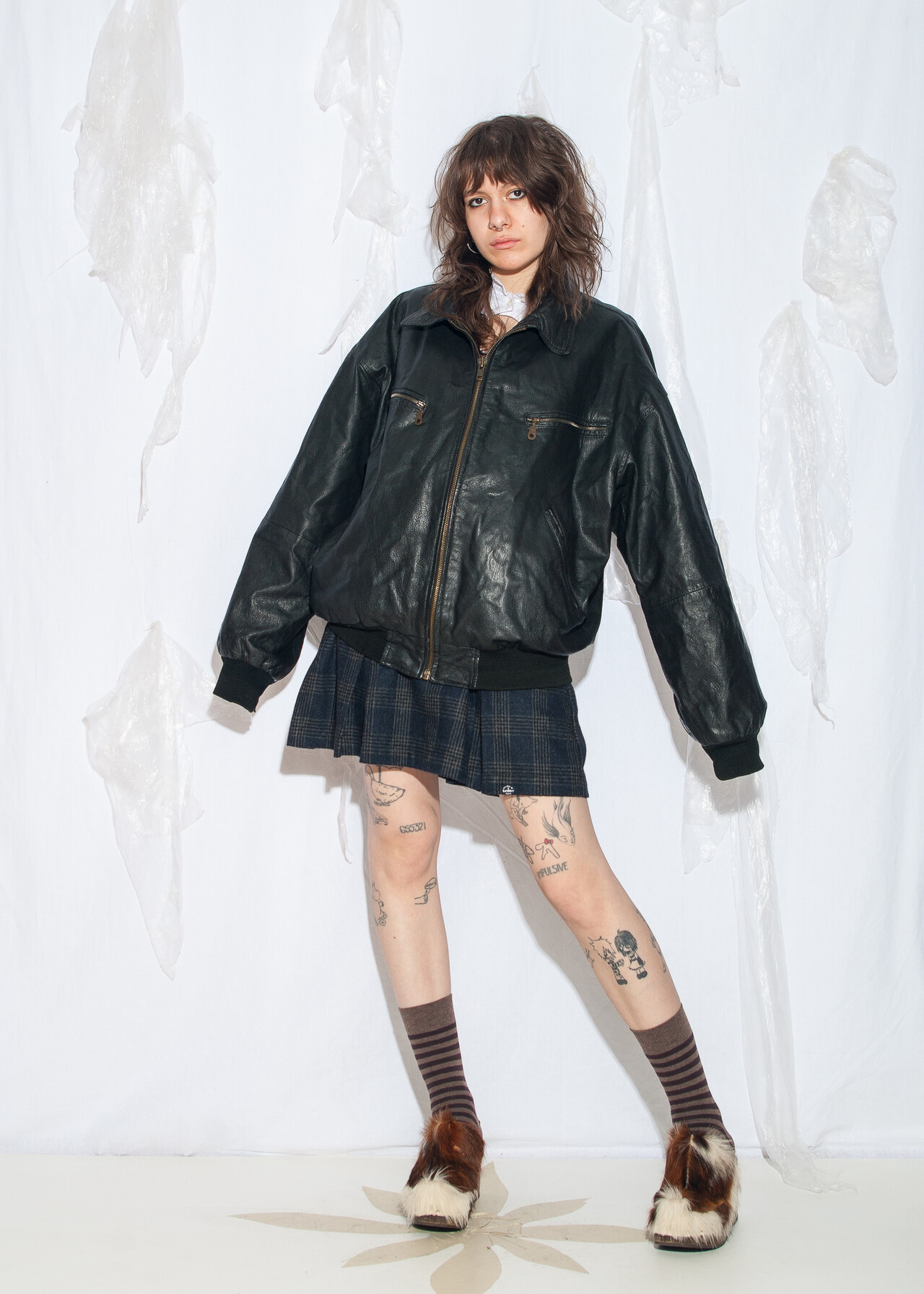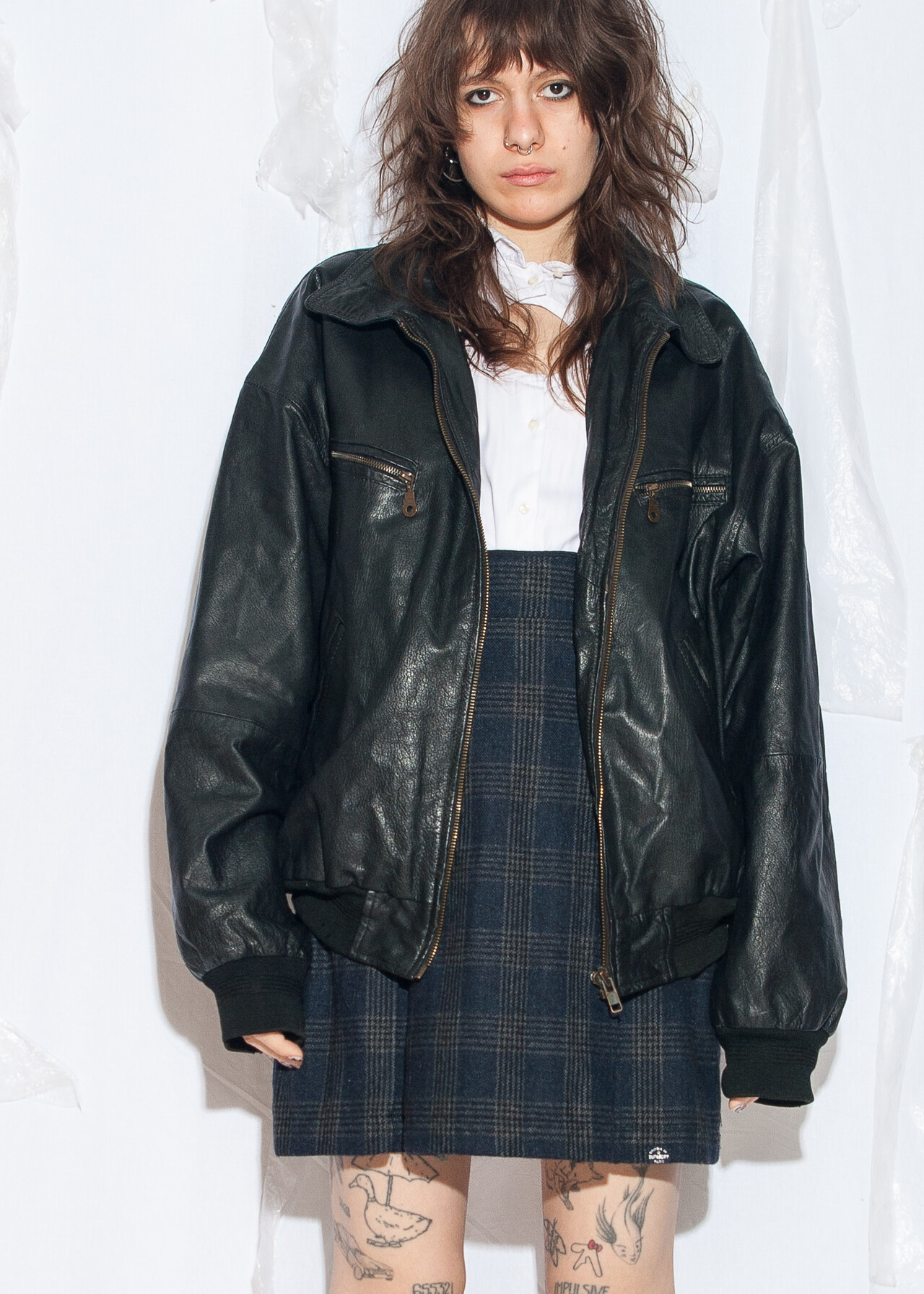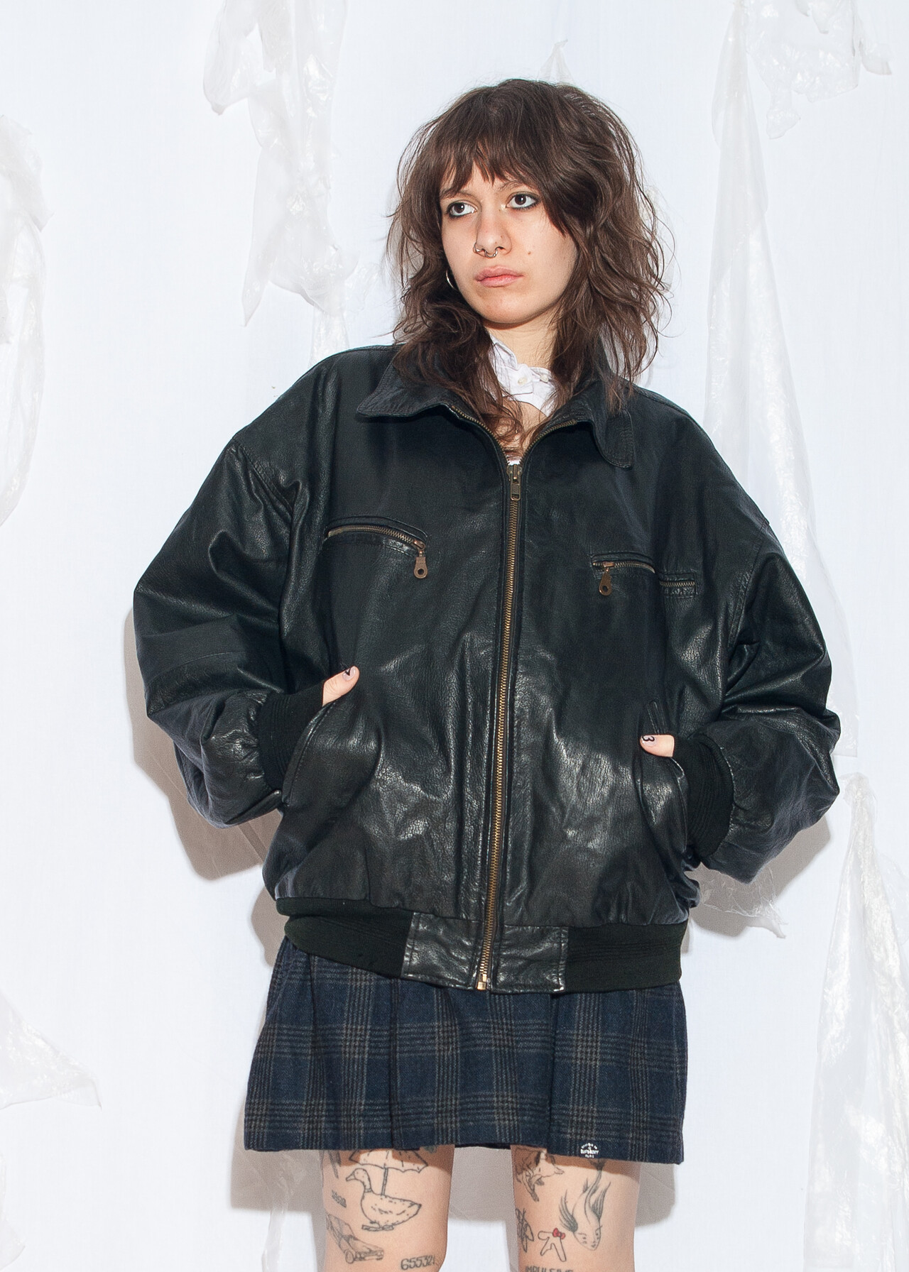 Tags: 00s streetwear, 90s vintage fashion, bomber jacket, boyfriend fit, gender neutral, grunge outfit, oversized, real leather coat, y2k style clothing