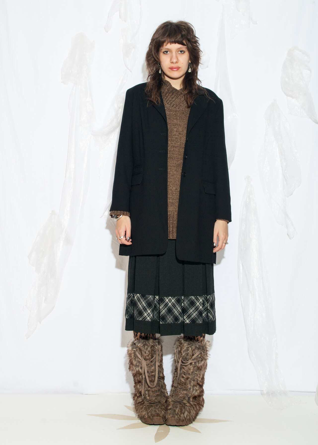 Tags: 90s vintage fashion, dark academia, long black jacket, longline coat, minimalist style, office siren, officecore look, oversized blazer, y2k grunge outfit