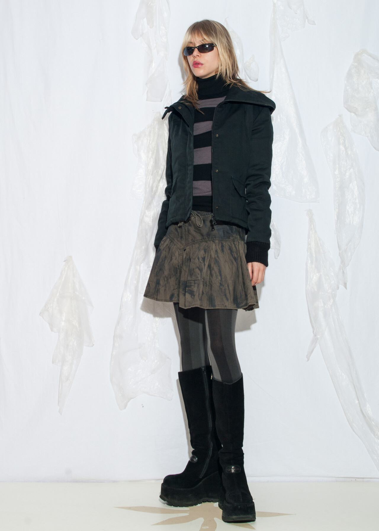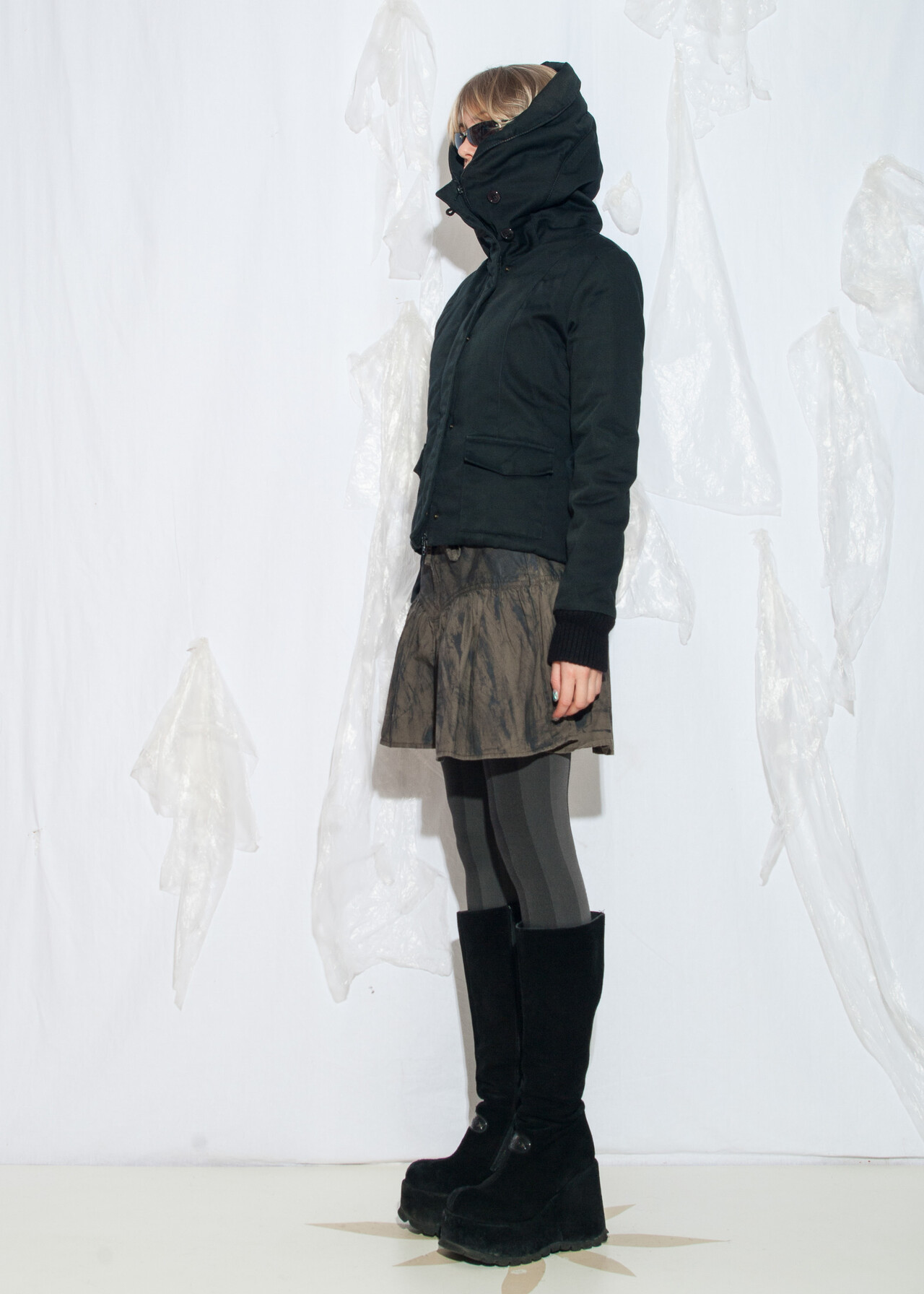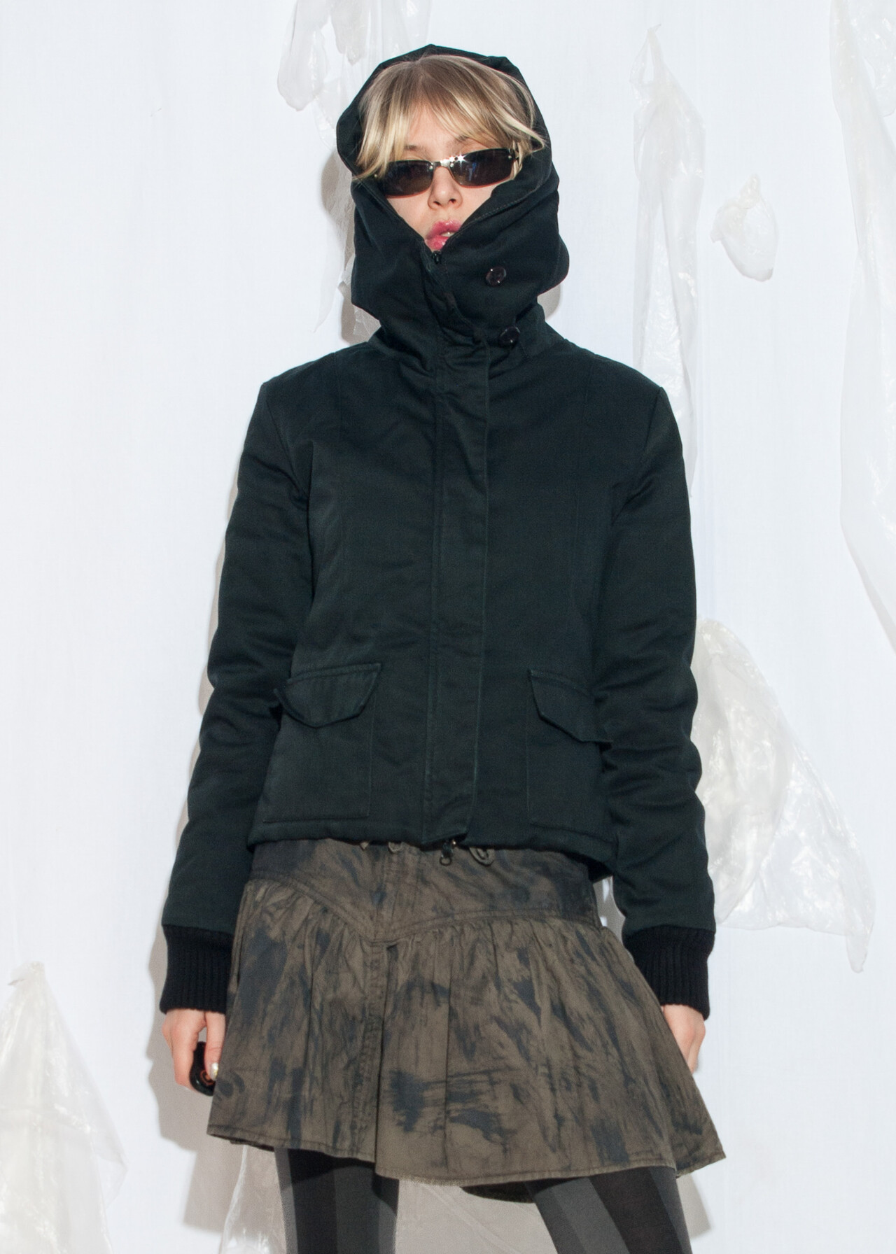 Tags: 2000s streetwear, cotton blend, fitted coat, hooded crop jacket, minimalist look, subversive, vintage clothing, y2k grunge outfit