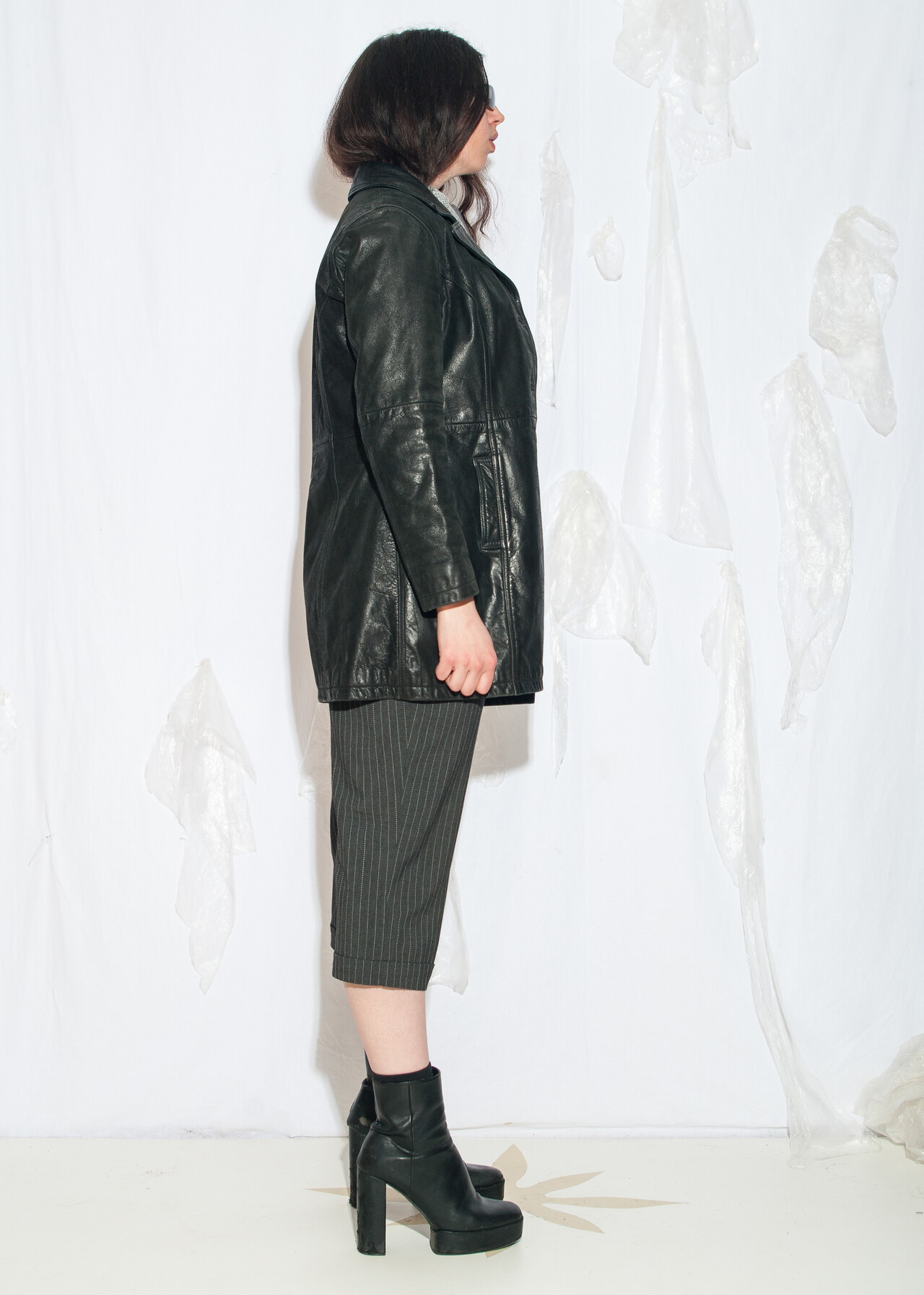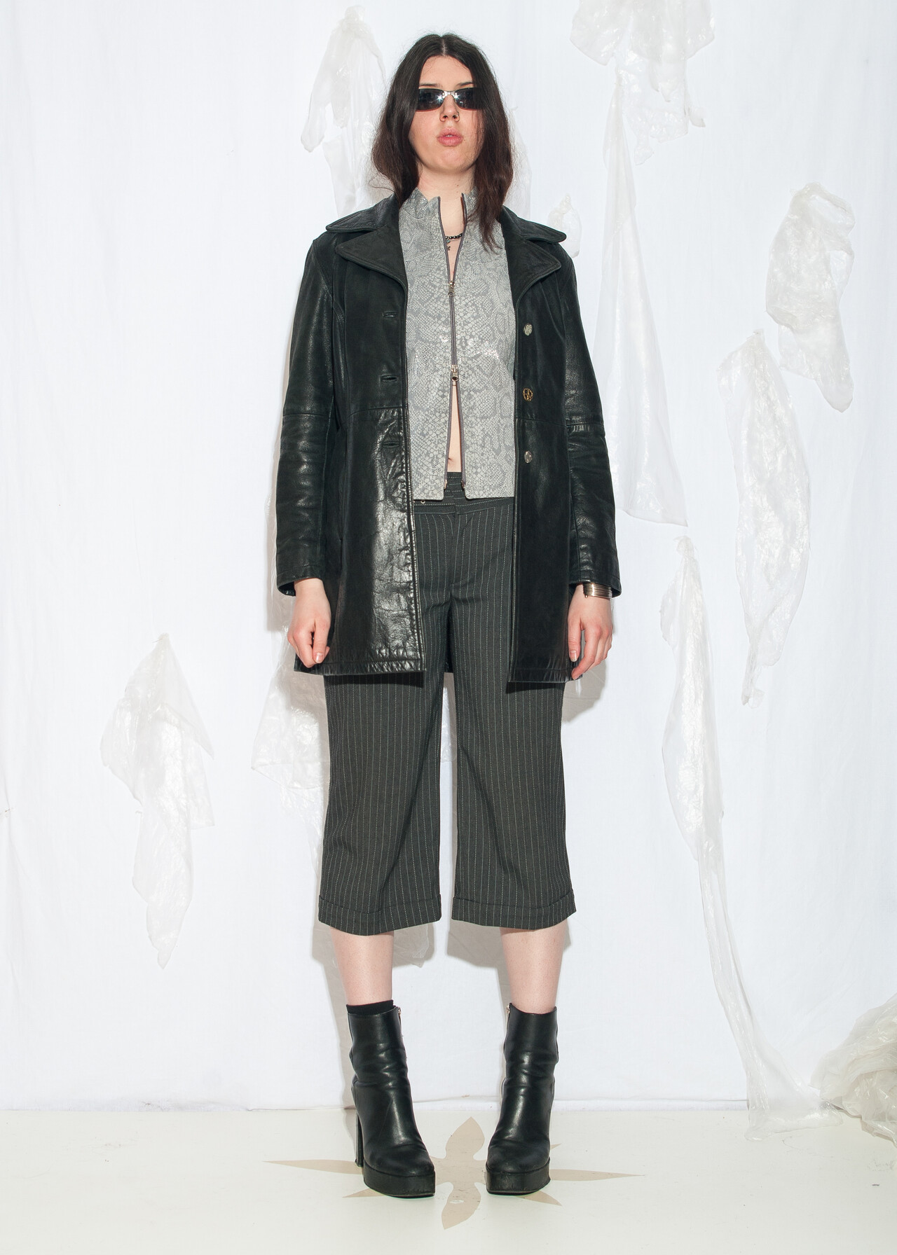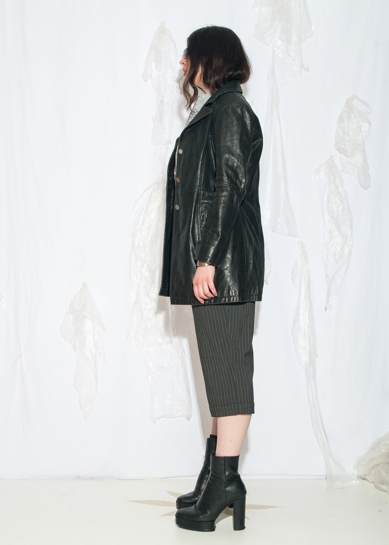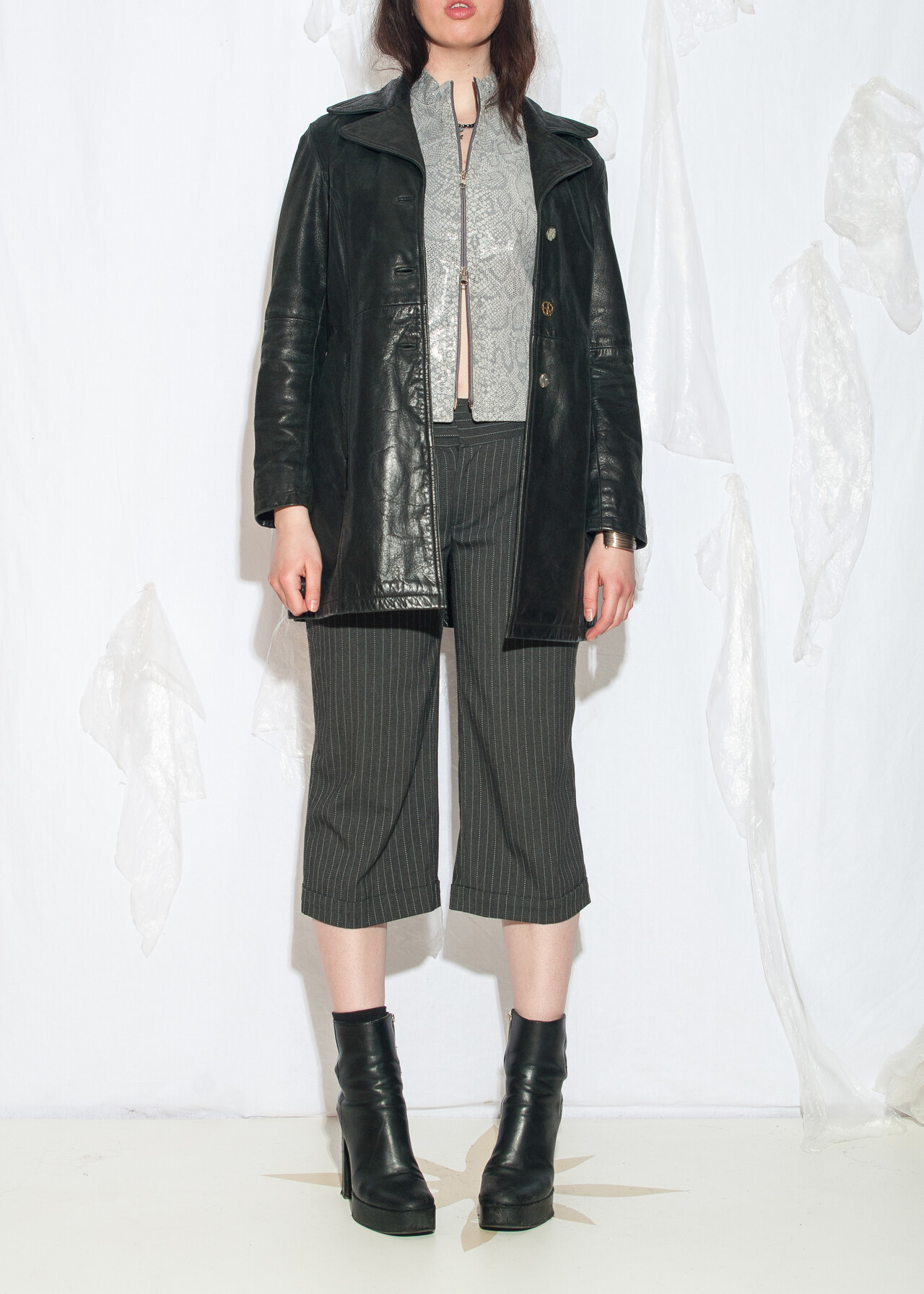 Tags: 2000s style fashion, blazer cut jacket, chunky jacket, European vintage, grunge outfit, real leather coat, upcycled, whimsigoth look, y2k vintage clothing