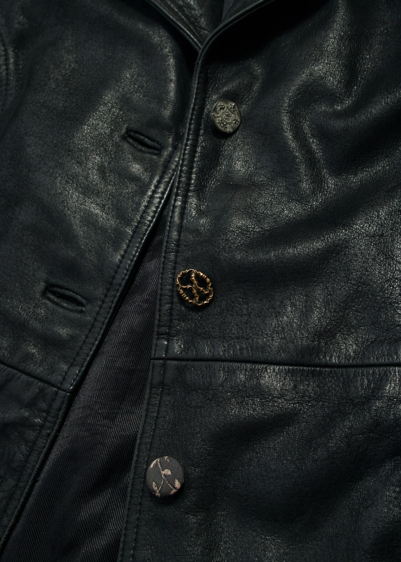 This Y2K vintage coat is a chunky, upcycled masterpiece with mismatched vintage buttons that scream mid 2000s vibes. A real leather blazer cut jacket that’s as iconic as your old flip phone and twice as cool.