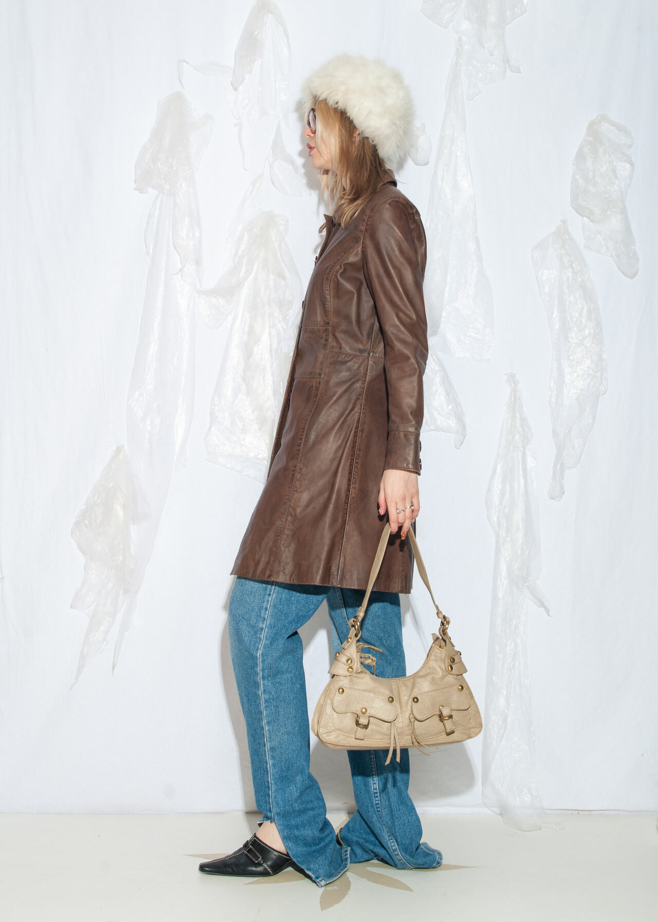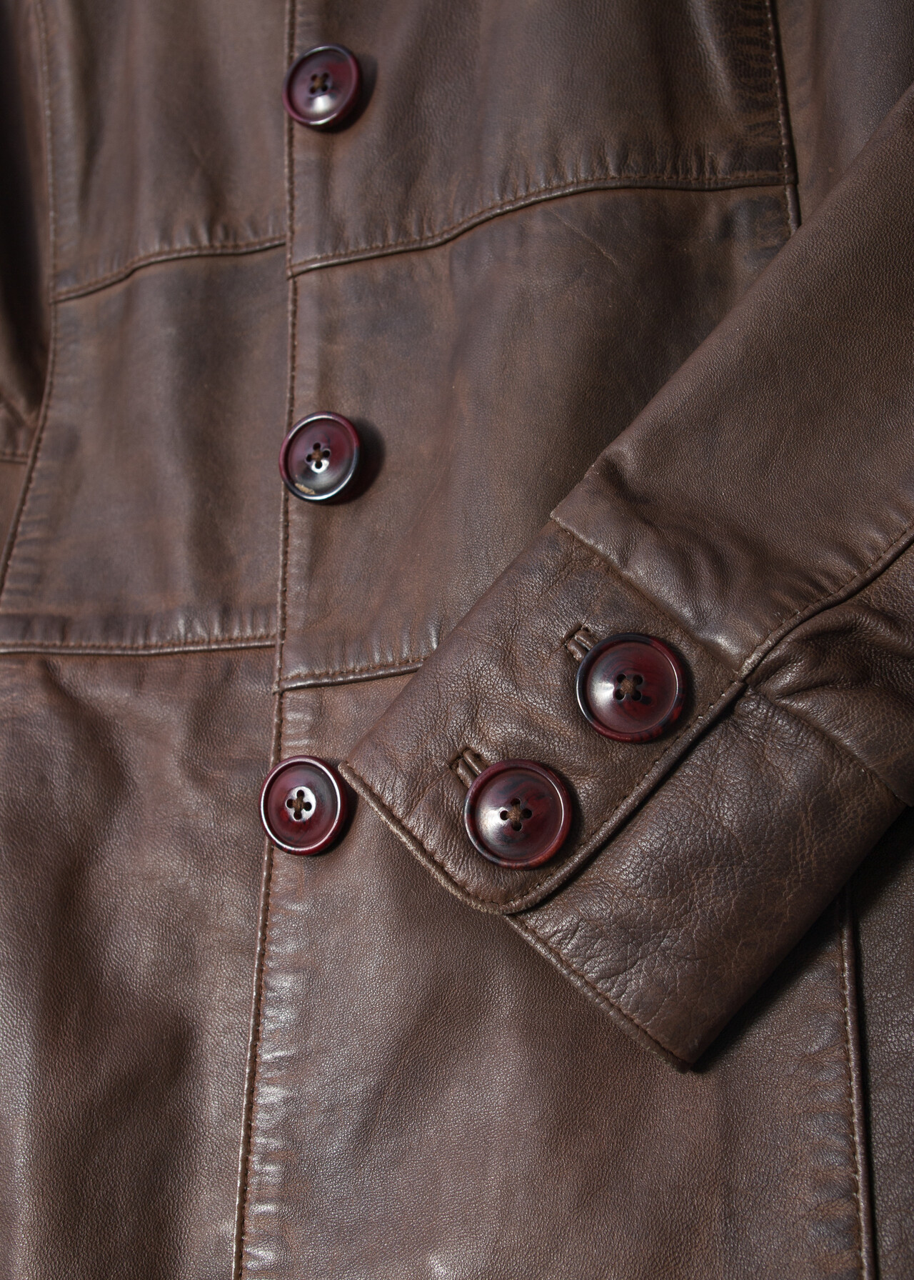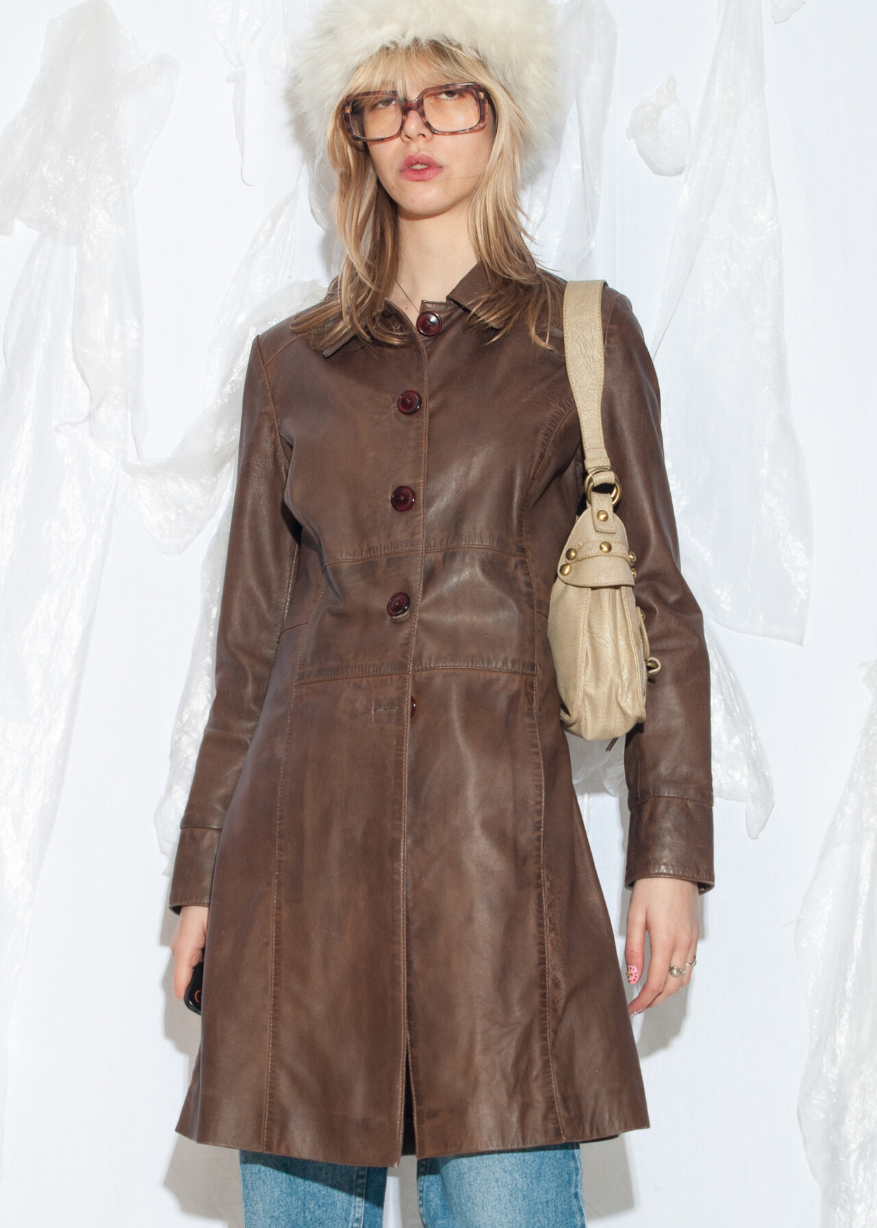 Vintage Y2K Leather Coat in Dirty Brown