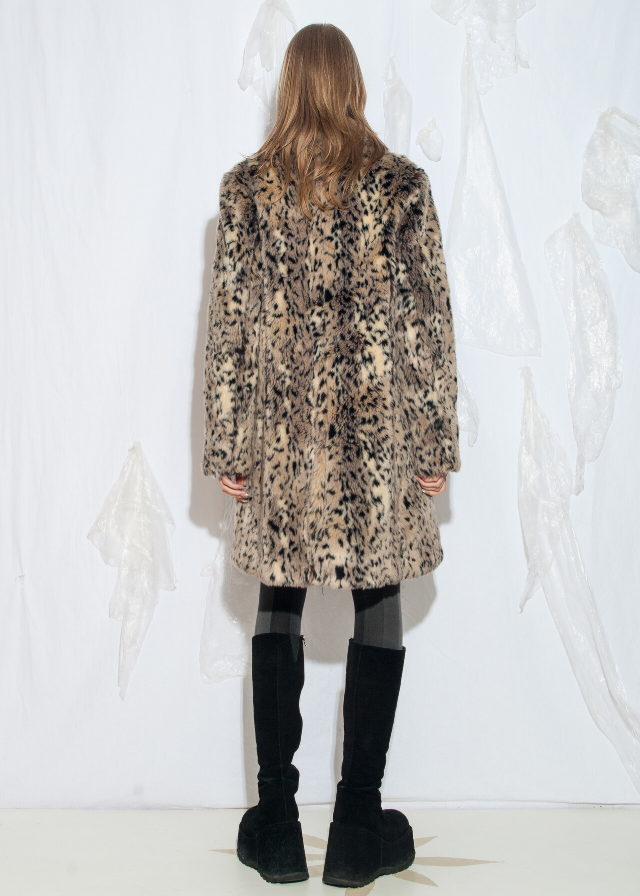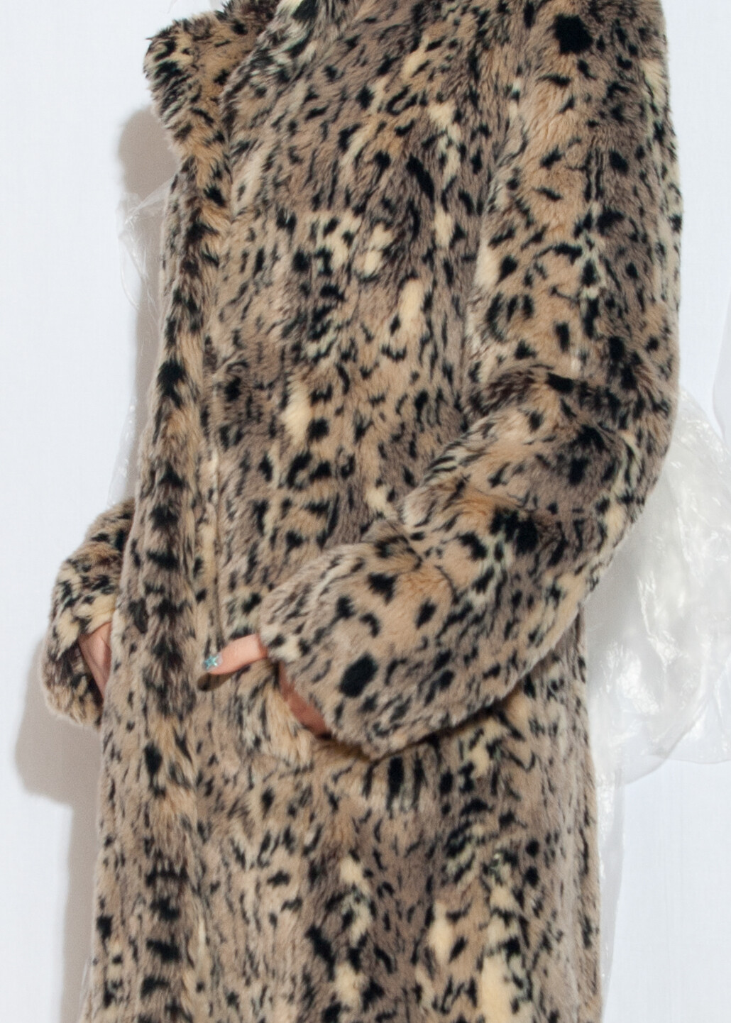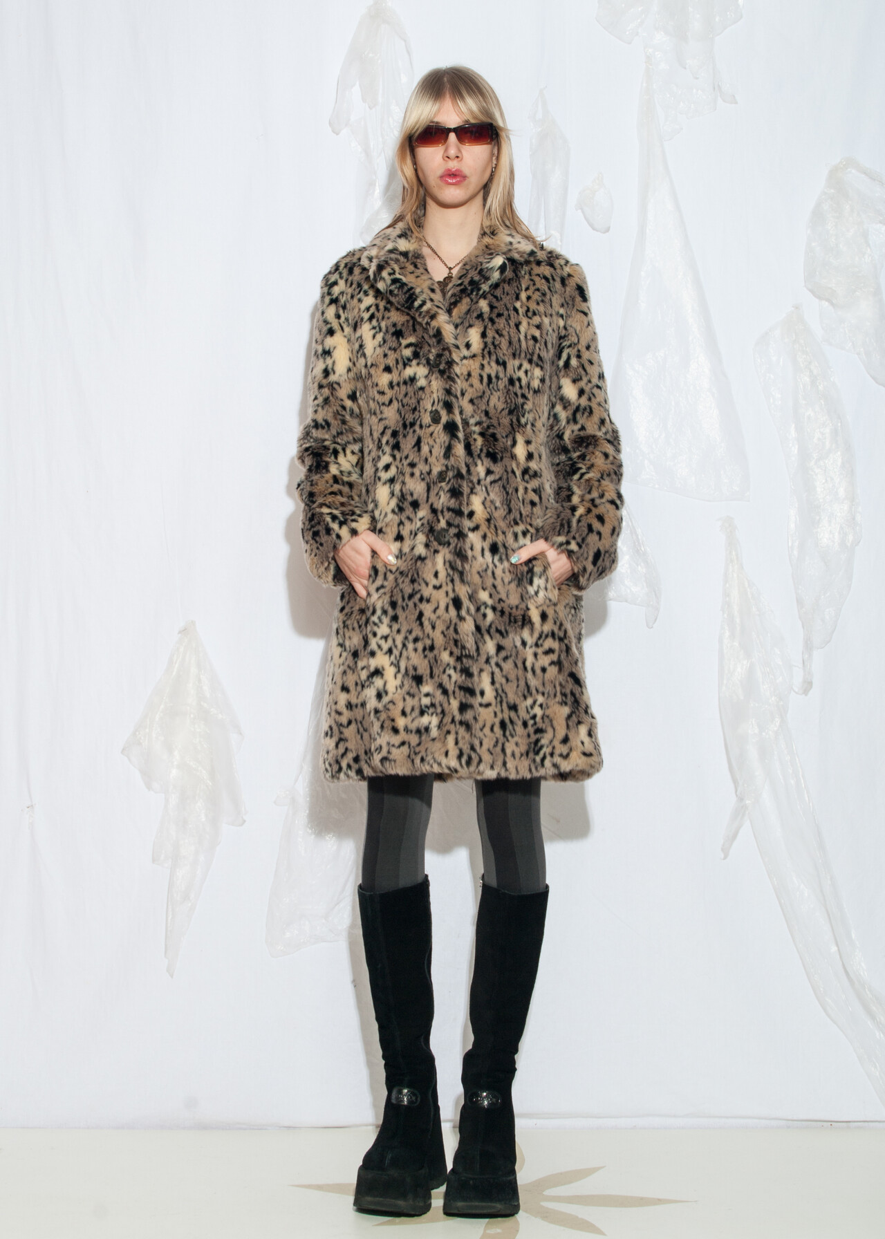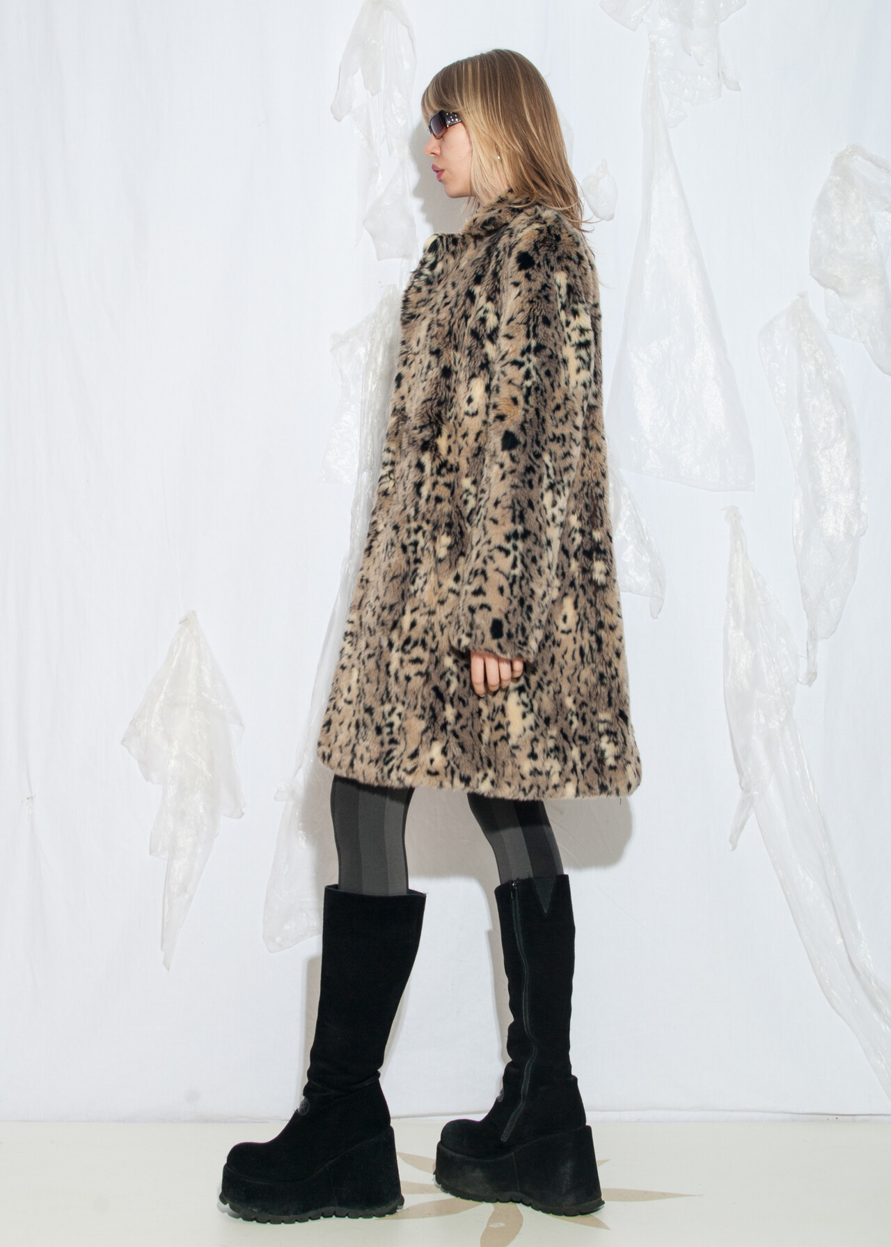 Vintage Y2K Leopard Faux Fur Coat in Beige