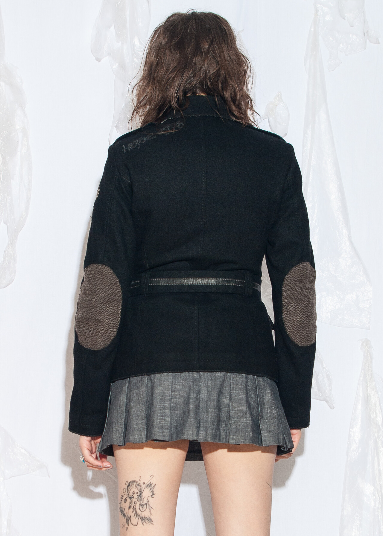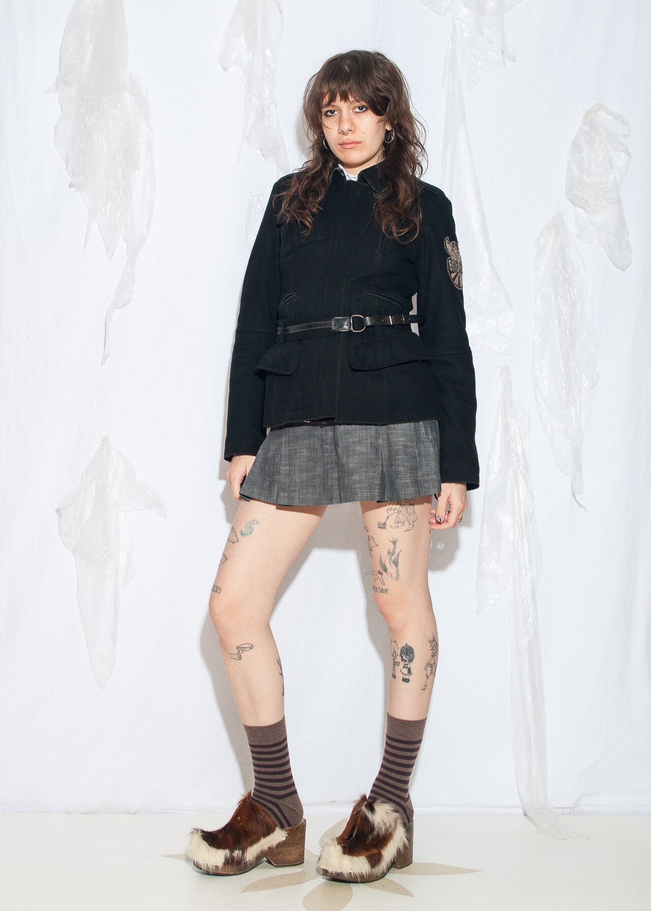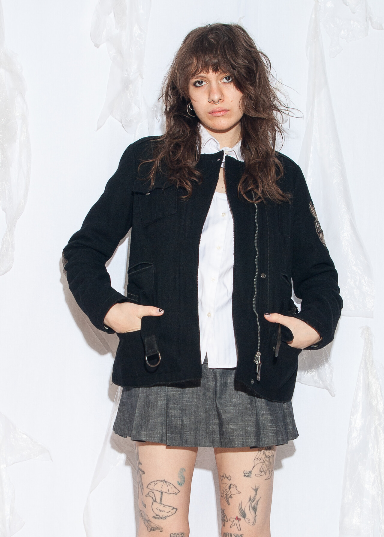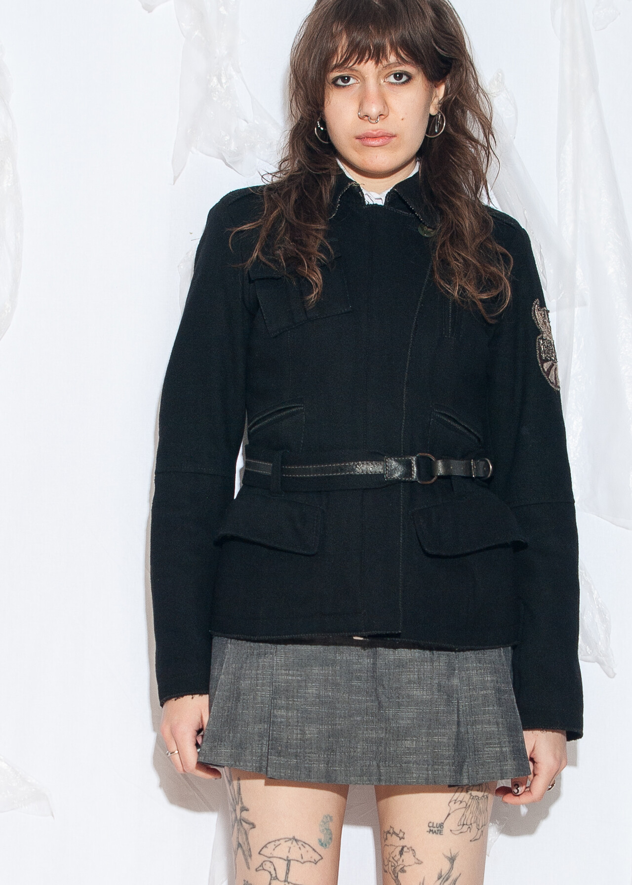 Tags: 2000s style fashion, fitted jacket, grunge outfit, leather belt, military uniform, wool coat, y2k vintage clothing