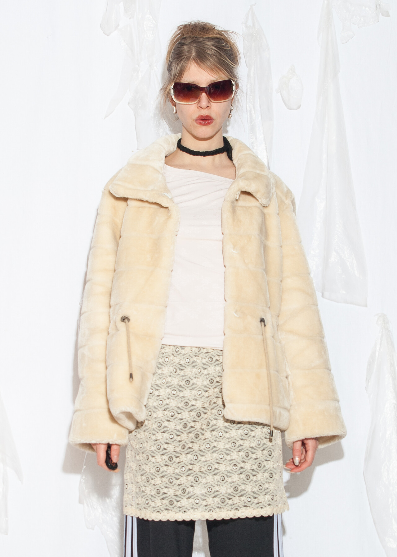 This Y2K vintage faux fur coat is oversized enough to make you feel like a cozy Italian marshmallow. It’s beige, it’s made in Italy, and it’s ready to transport you back to the early 2000s wonderland.