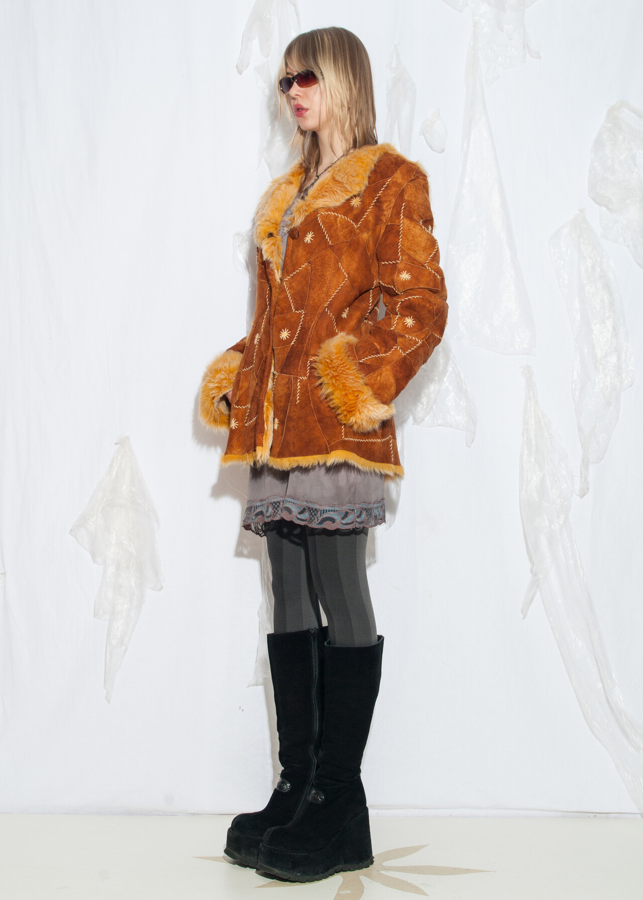 Tags: 2000s style fashion, flower embroidery, patchwork leather, Penny Lane style, real suede, shearling coat, sheepskin jacket, whimsi twee, whimsigoth, y2k vintage clothing