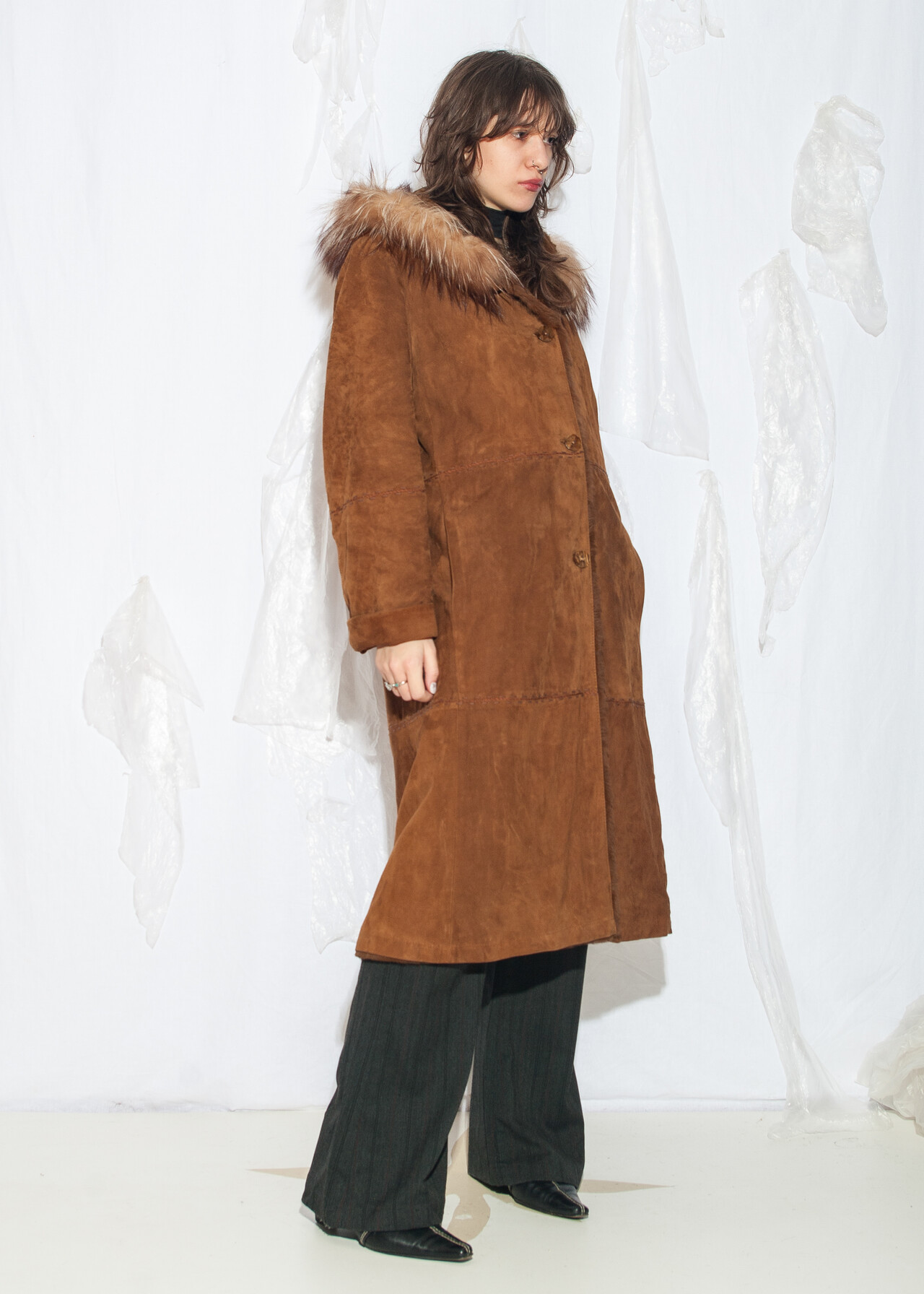 Tags: 2000s style fashion, afghan coat, European vintage, furry hood, leather coat, luxury vintage, Penny Lane style, real fur lining, shearling coat, suede jacket, y2k grunge outfit, y2k vintage clothing