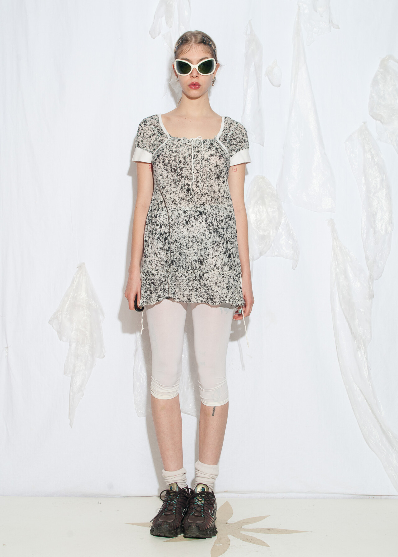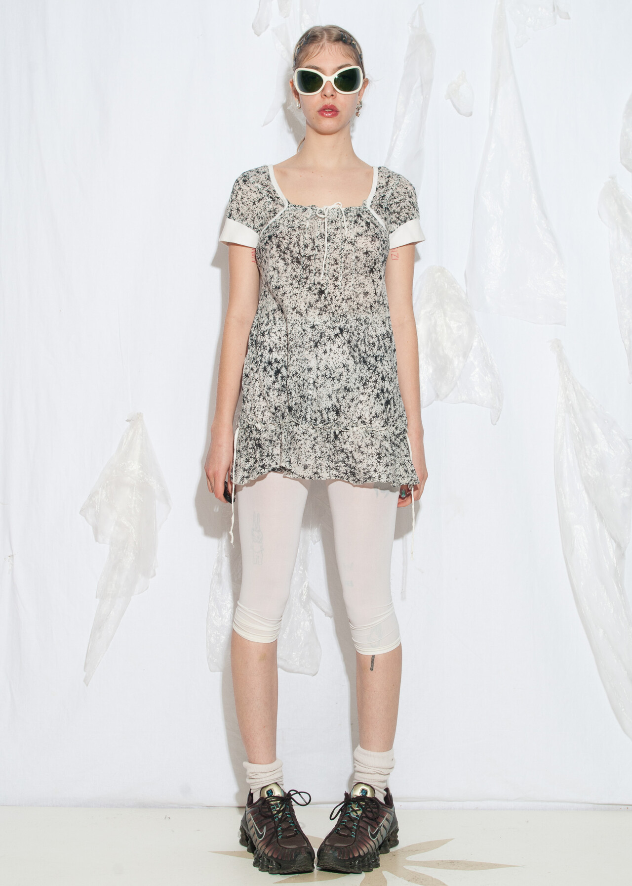 Vintage Y2K Star Print Tunic Dress in White Silk Blend