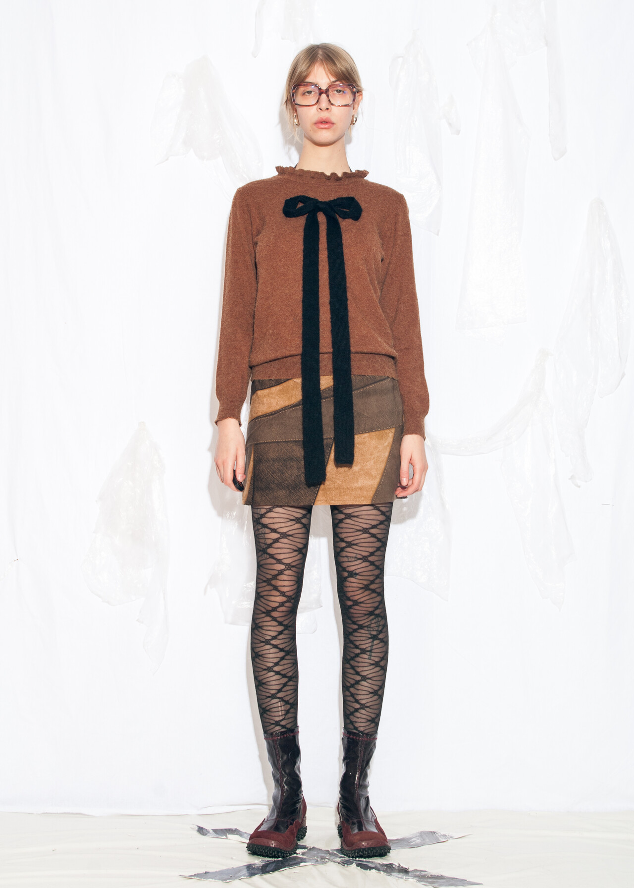 – reworked: oversized knitted bow hand-sewn to the jumper by us