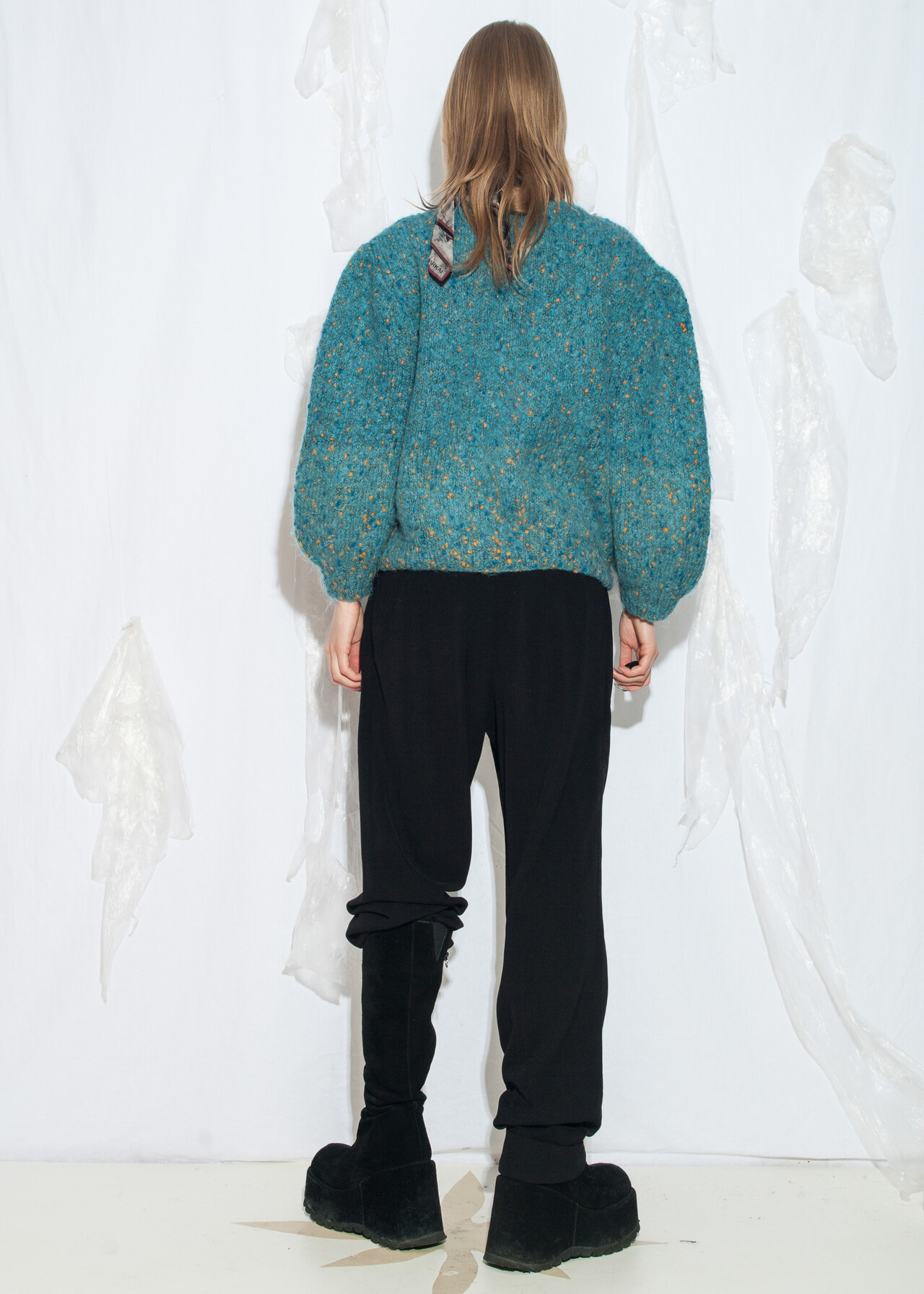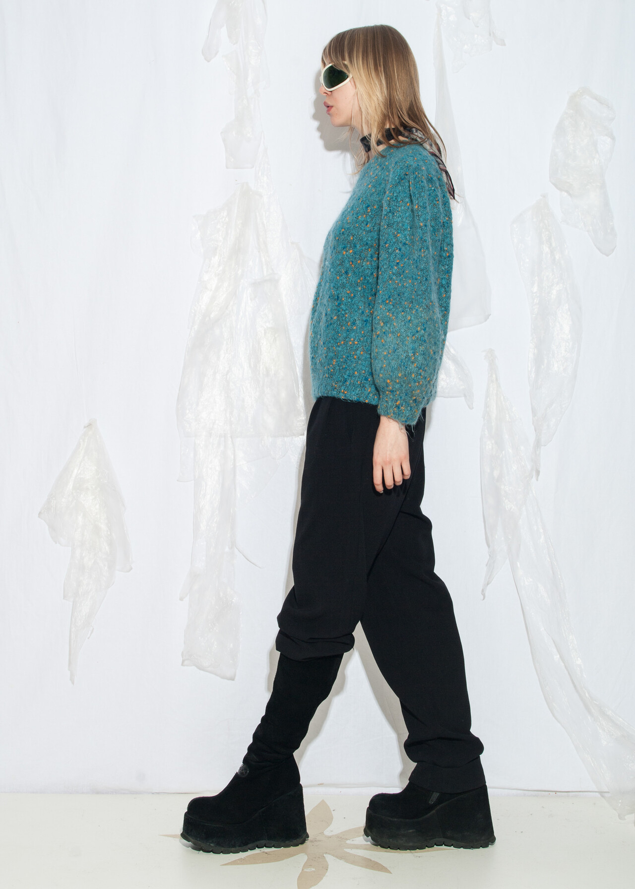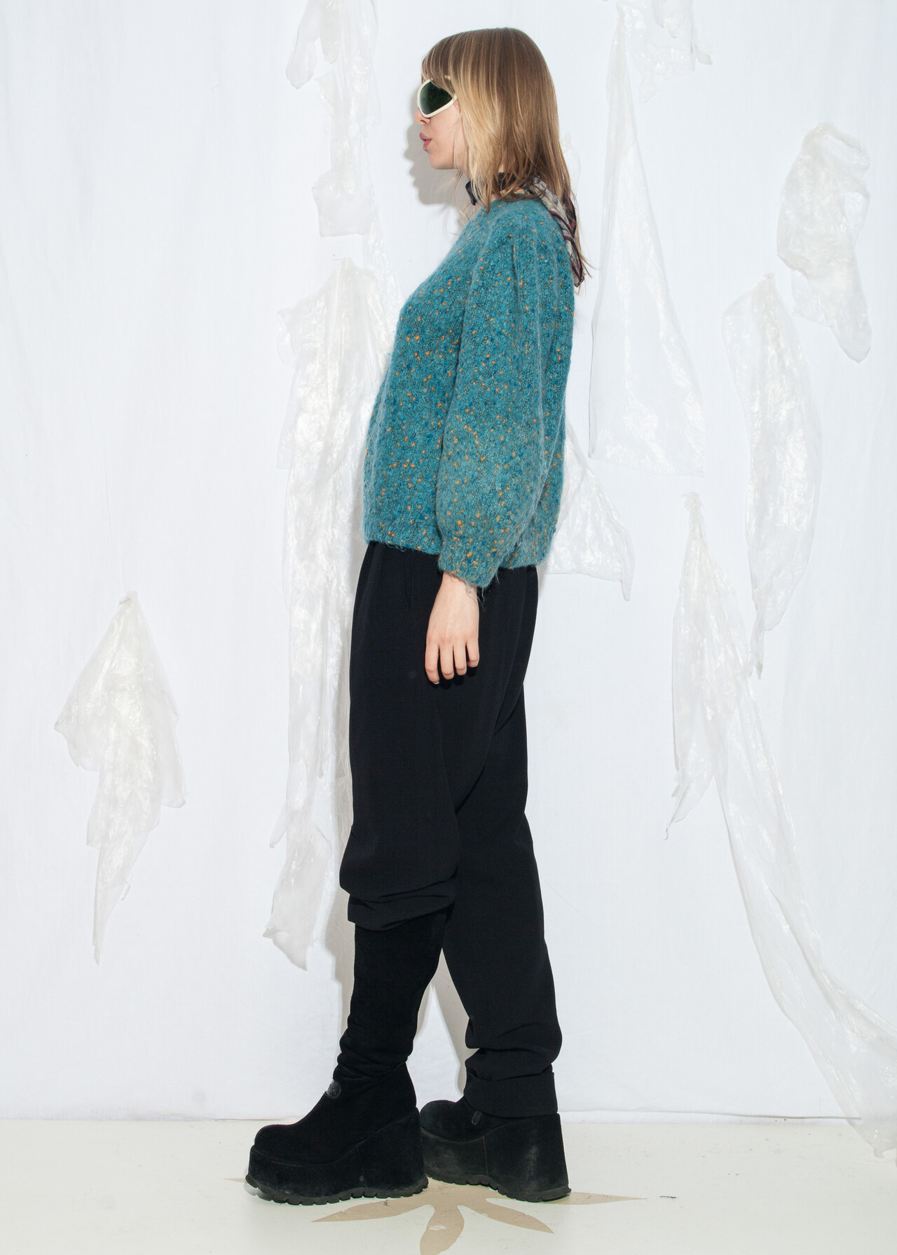 Tags: 80s vintage fashion, balloon sleeves, fuzzy pullover, grunge outfit, hand knitted, handmade knitwear, oversized jumper, wide shoulders, wool sweater, y2k style clothing