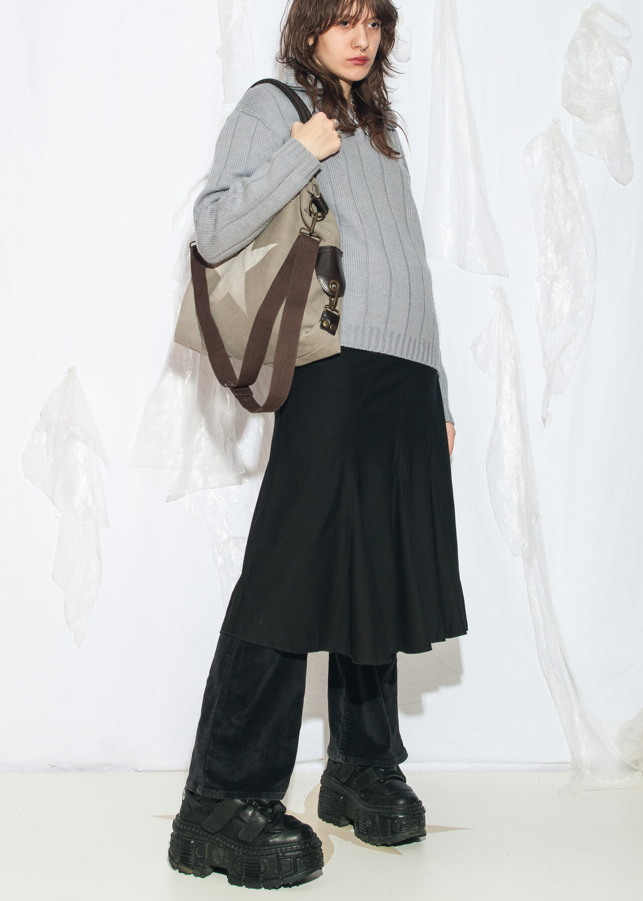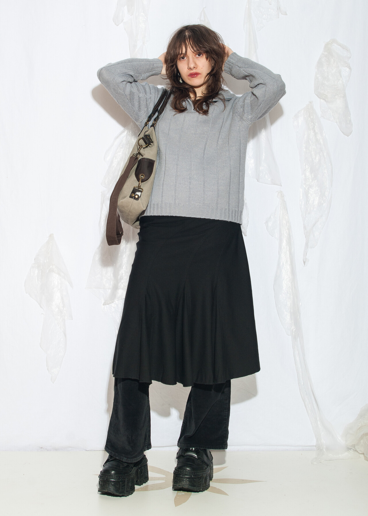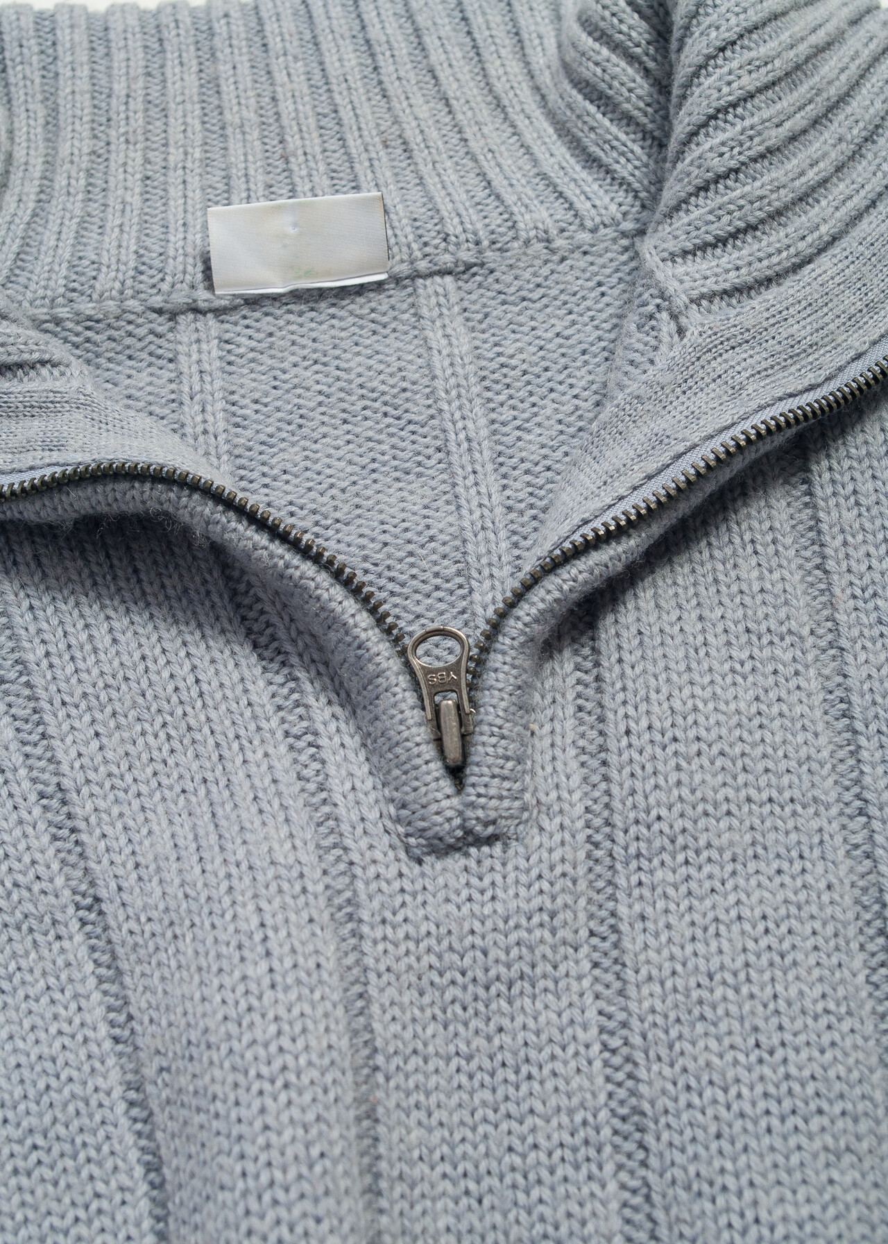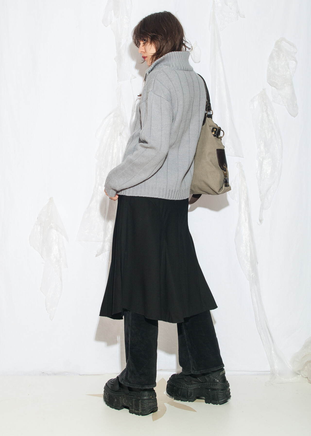 Tags: 00s streetwear, 2000s style fashion, gender neutral, grunge outfit, minimalist look, rib knitted sweater, standing collar, wool blend jumper, y2k vintage clothing