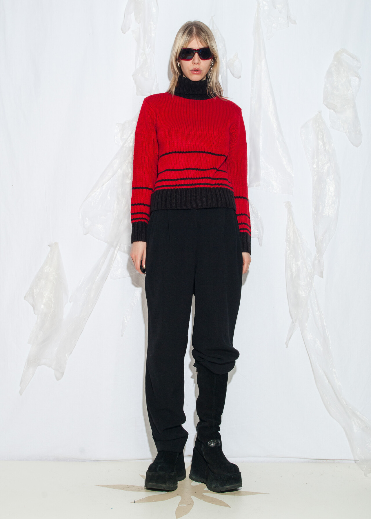 Tags: 2000s style clothing, crop pullover, grunge outfit, slim fit, striped sweater, turtleneck, wool blend jumper, y2k vintage fashion