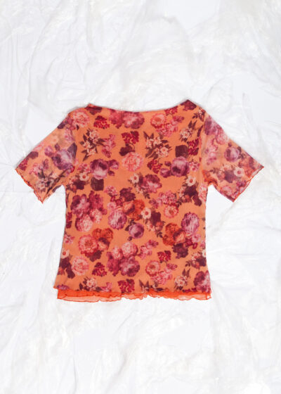 Vintage Y2K Mesh Rose Pattern Baby Tee in Orange