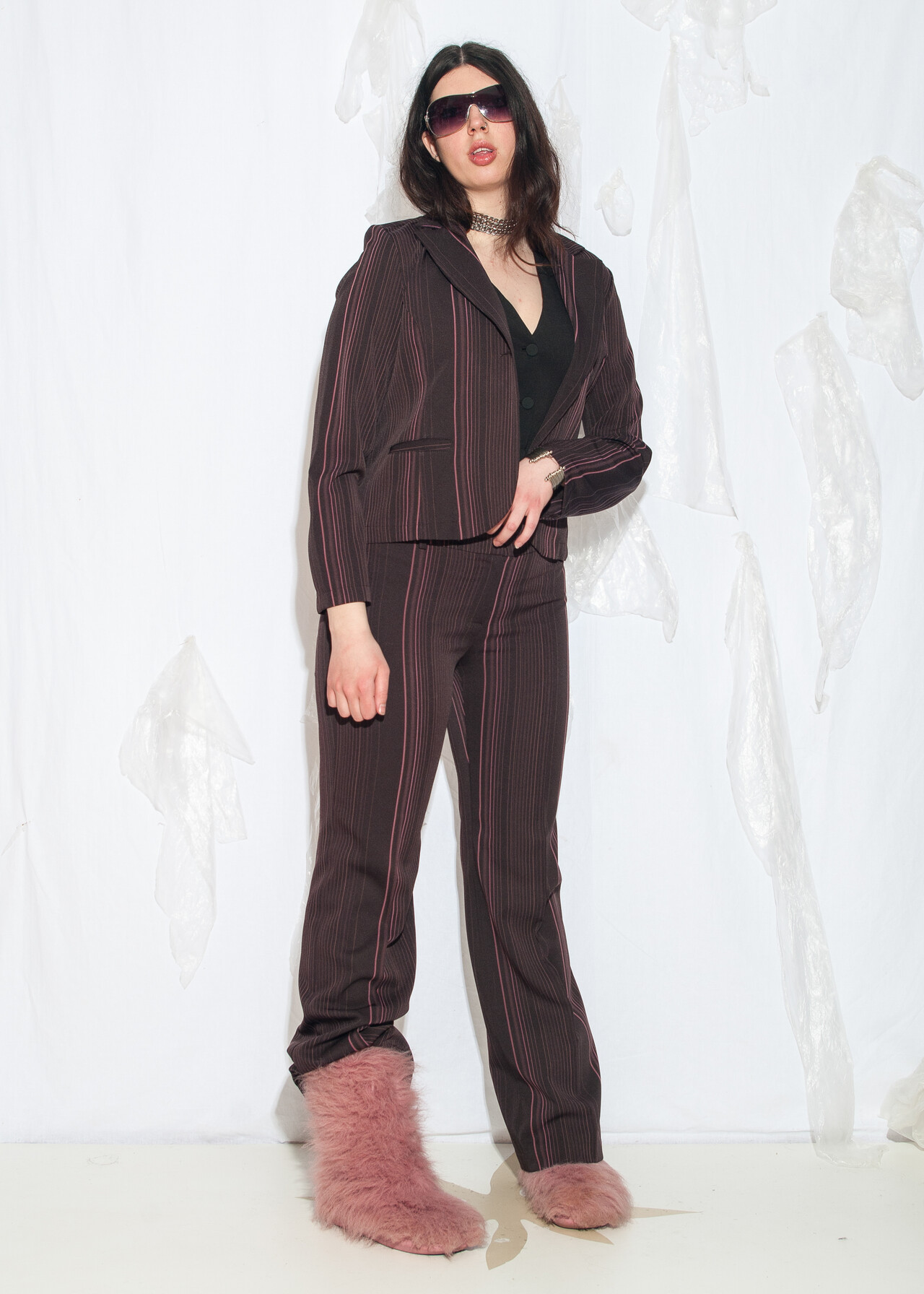 Vintage Y2K Pourquoi Pas Pinstriped Suit in Brown