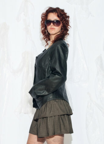 Vintage Y2K Boxy Fit Leather Coat in Black