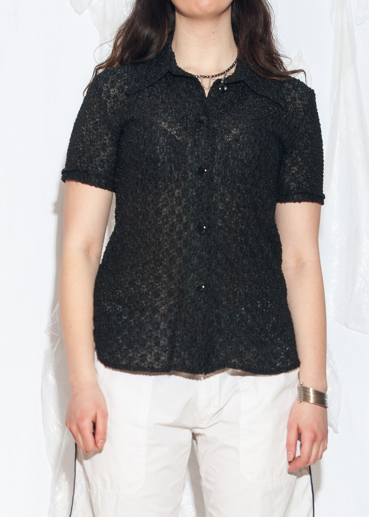 This 90s vintage shirt by Kovy is the ultimate grunge outfit for embracing your inner whimsigoth with short-sleeved black lace flair. Slip into this nostalgic gem and let your closet travel back to a time when flannel and angst ruled the scene.