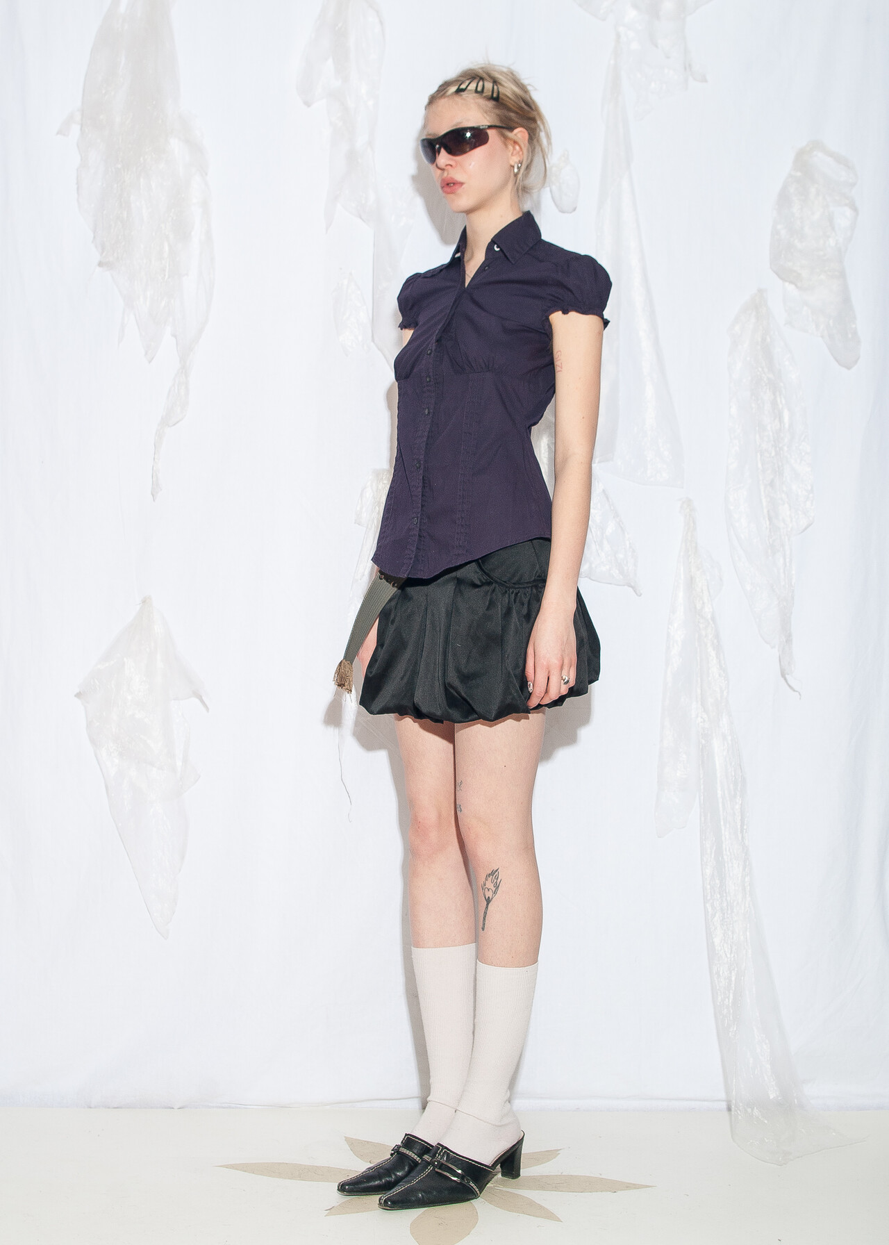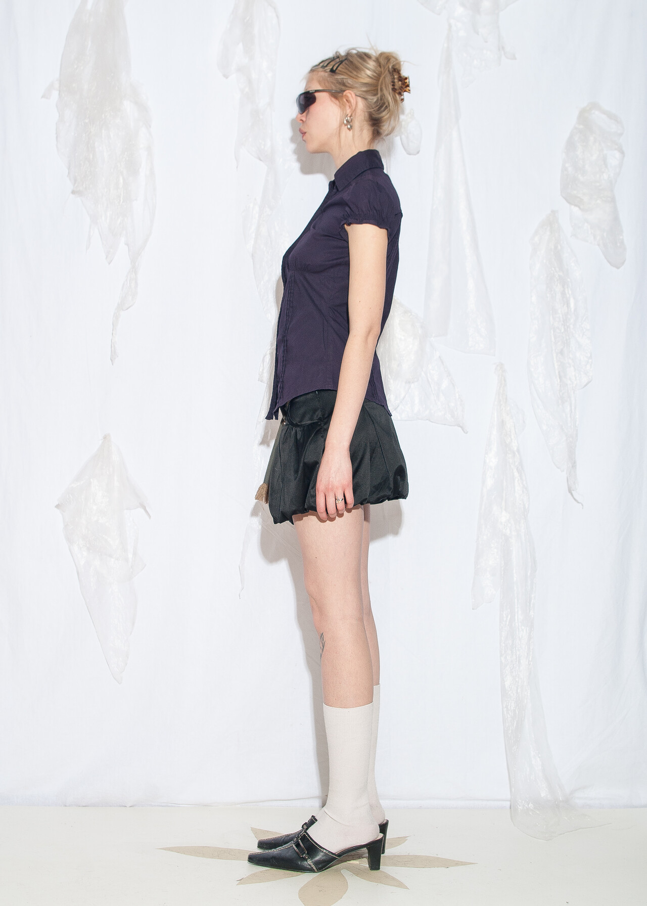 Vintage Y2K Puff Sleeve Blouse in Dark Plum