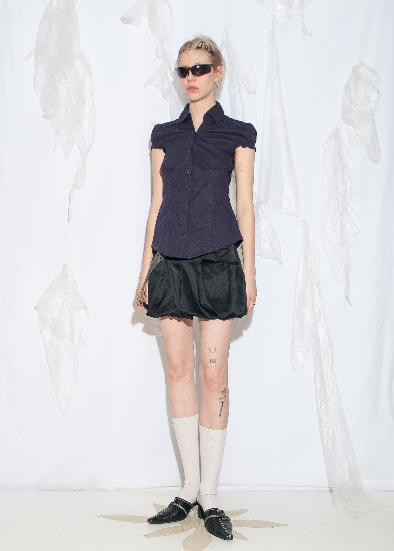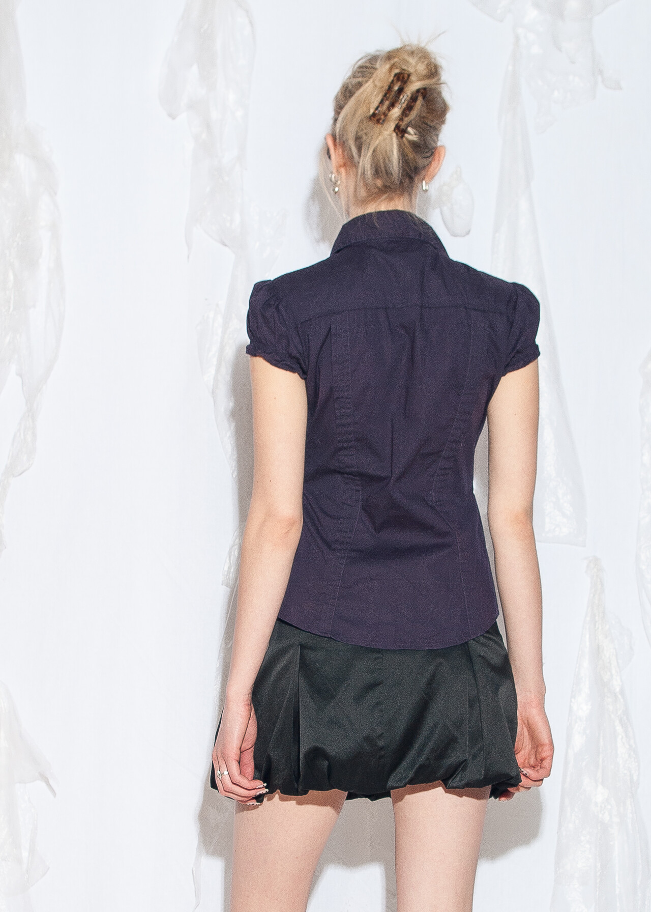 This Y2K vintage puff sleeve blouse in dark plum is your ticket to becoming the ultimate office siren, channeling dark coquette vibes while you relive the mid 2000s.