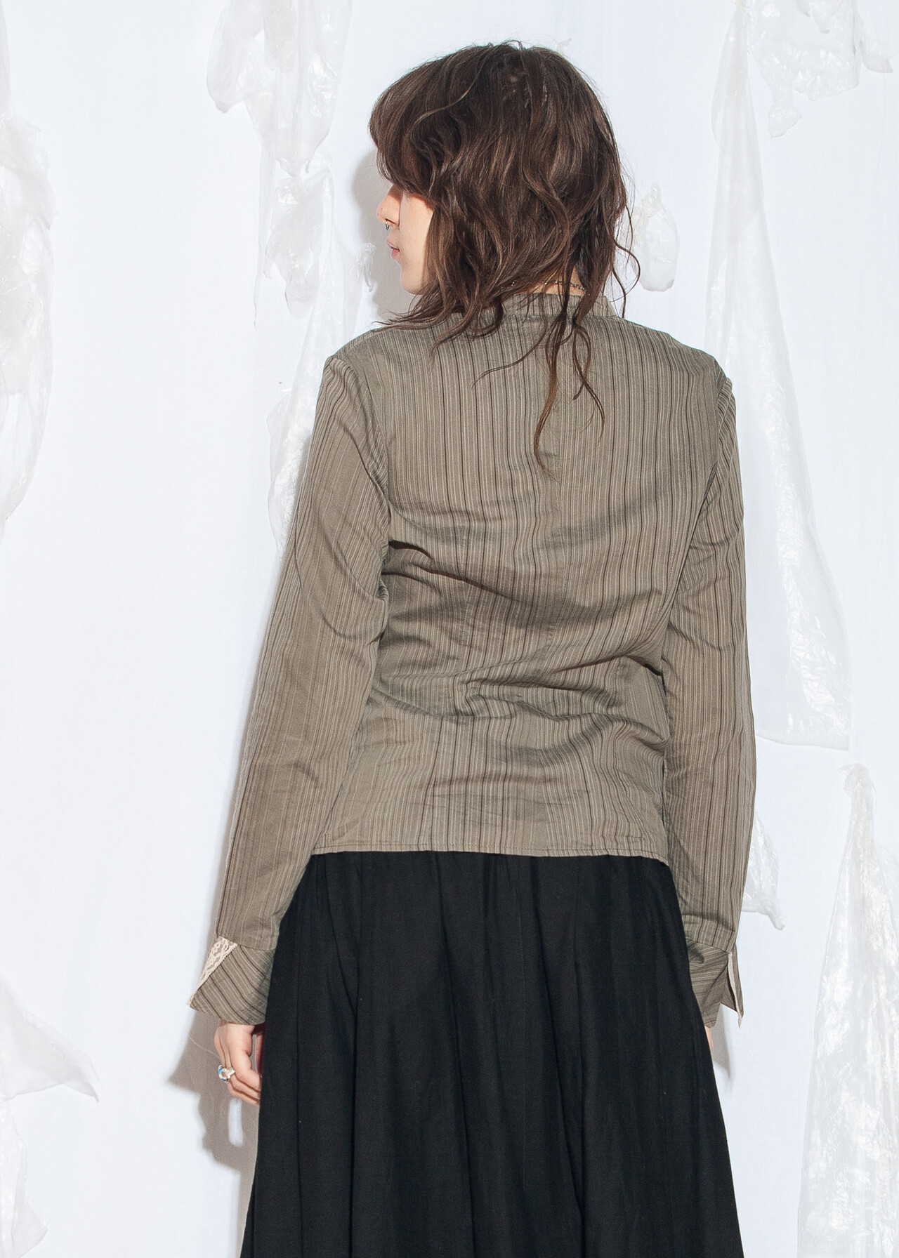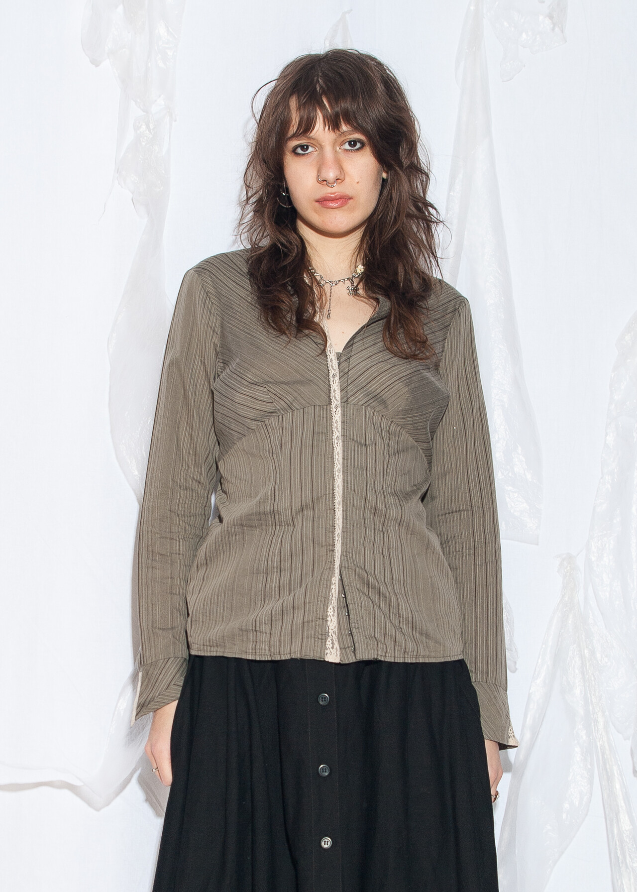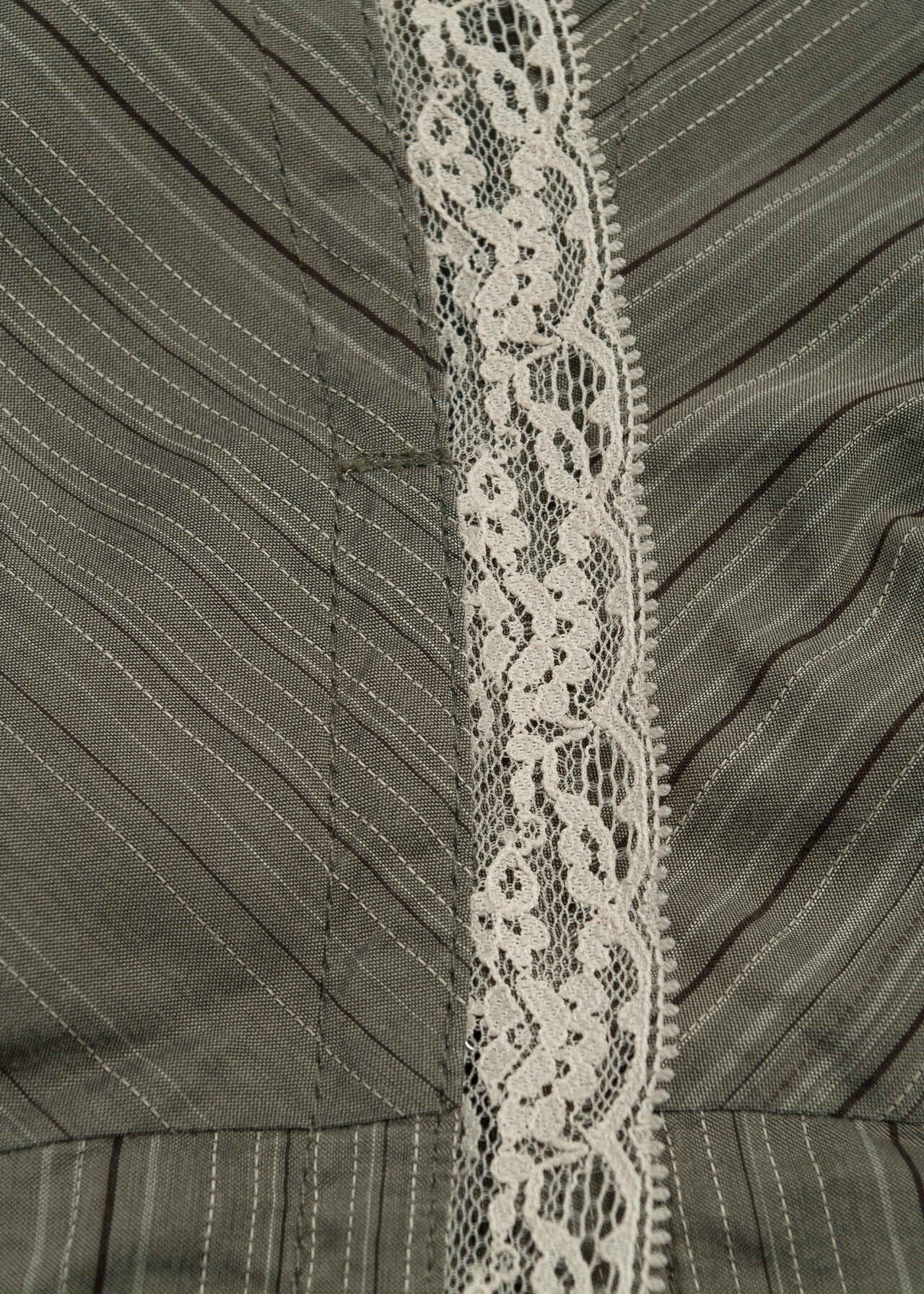 Vintage Y2K Striped Boho Blouse in Khaki with Lace