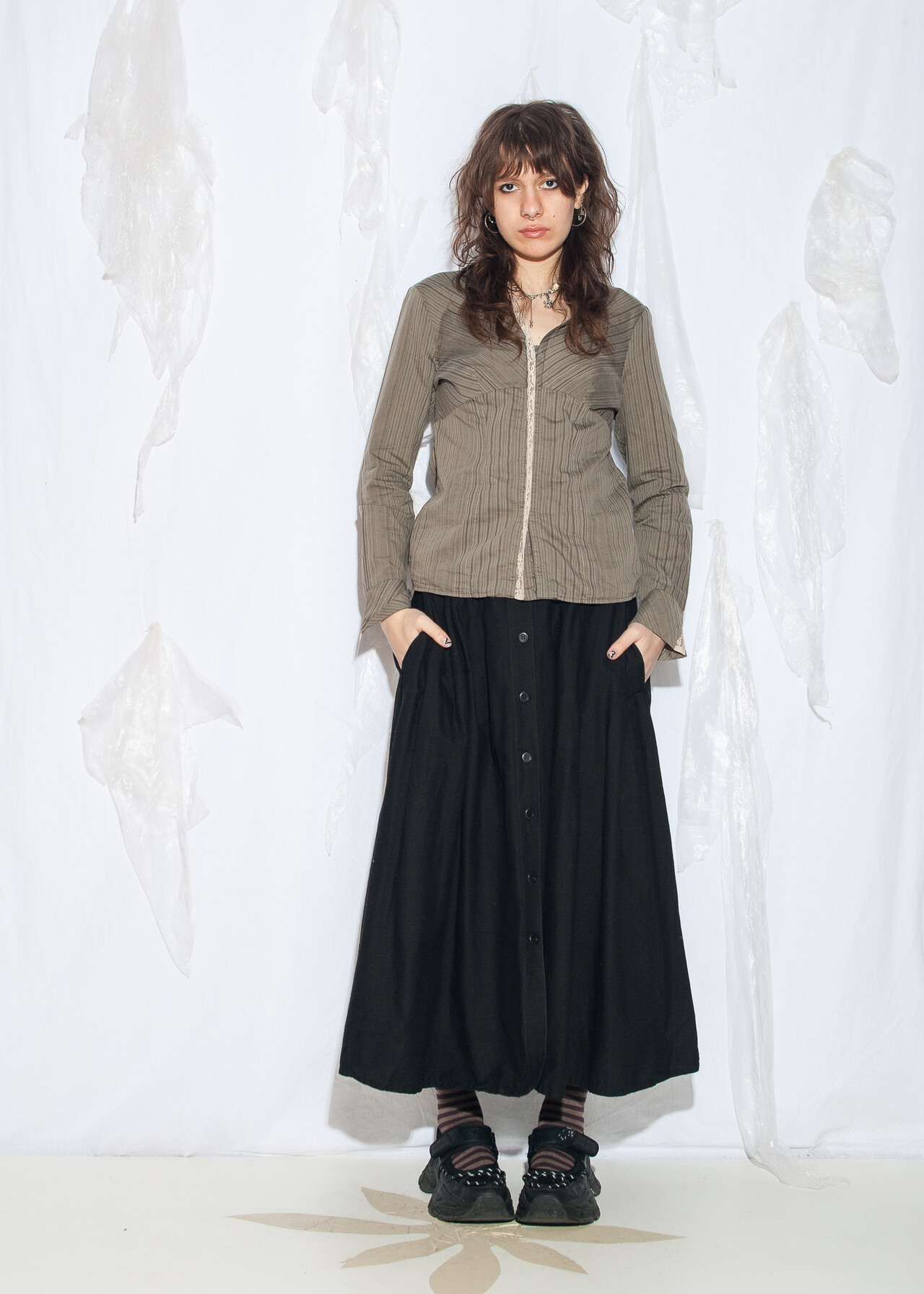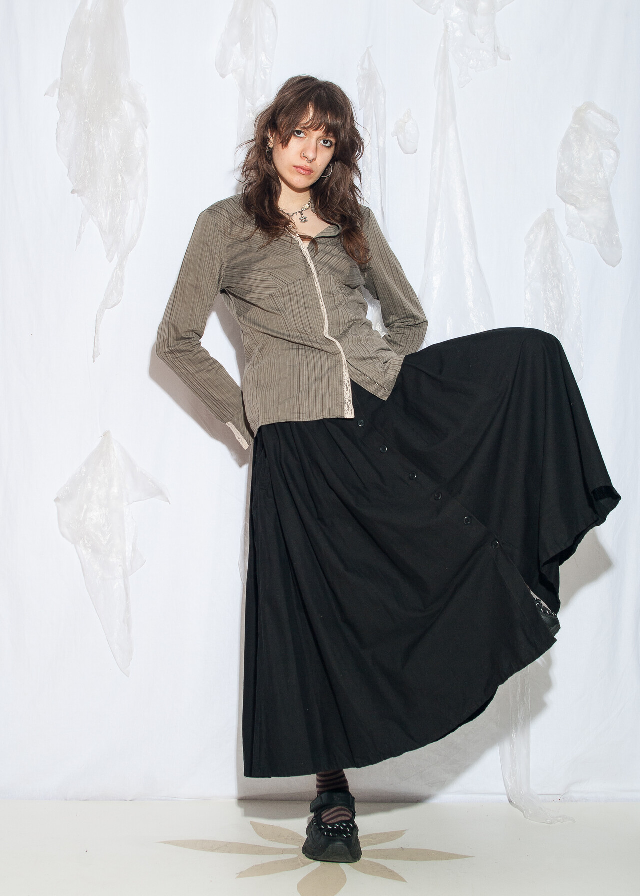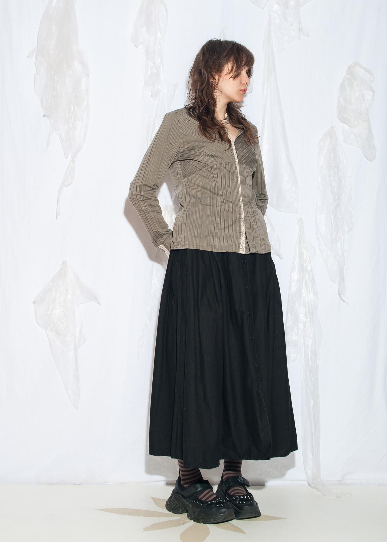 Tags: 2000s style fashion, boho romantic, fitted blouse, slim fit top, standing collar, striped shirt, whimsigoth, y2k vintage clothing