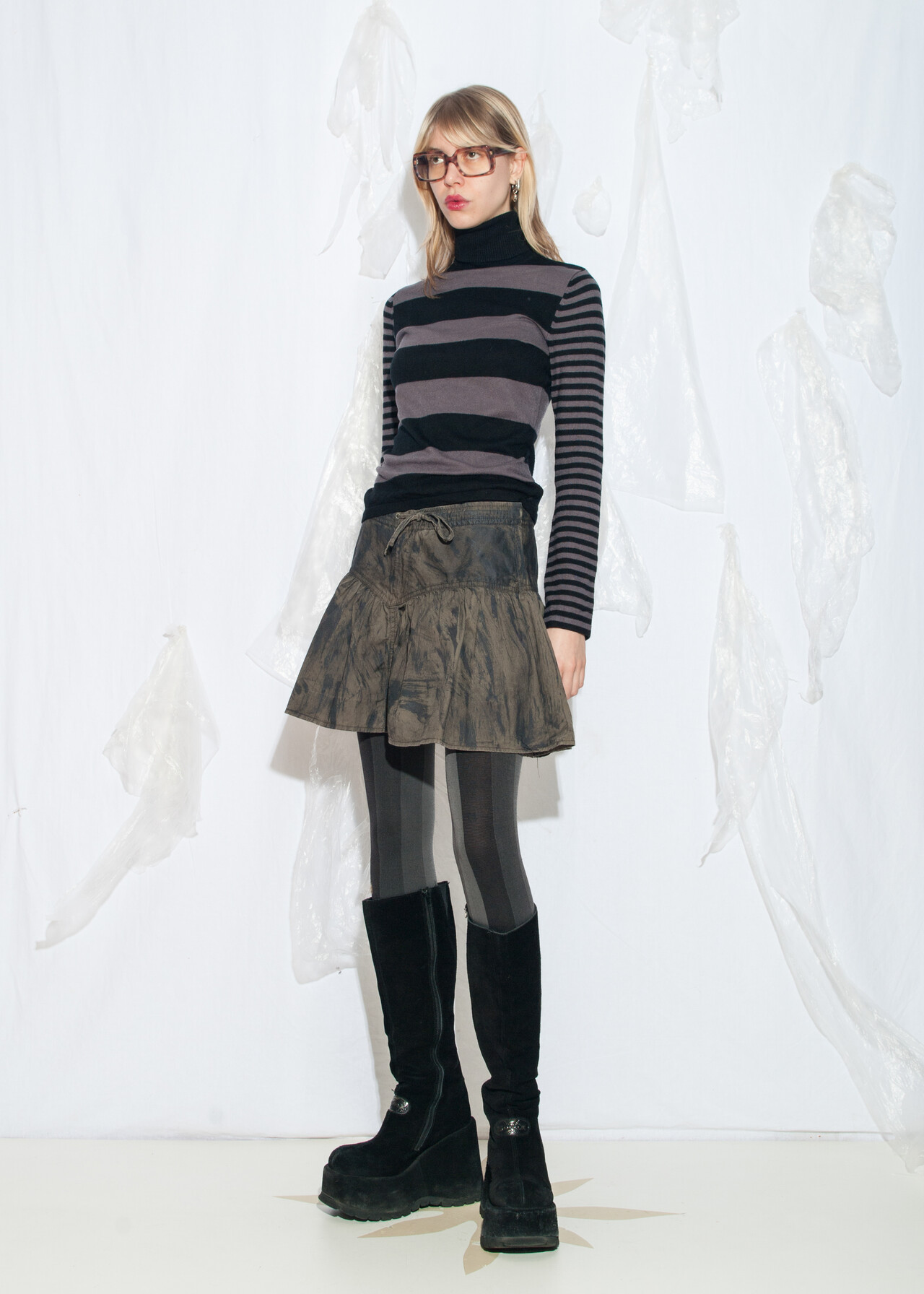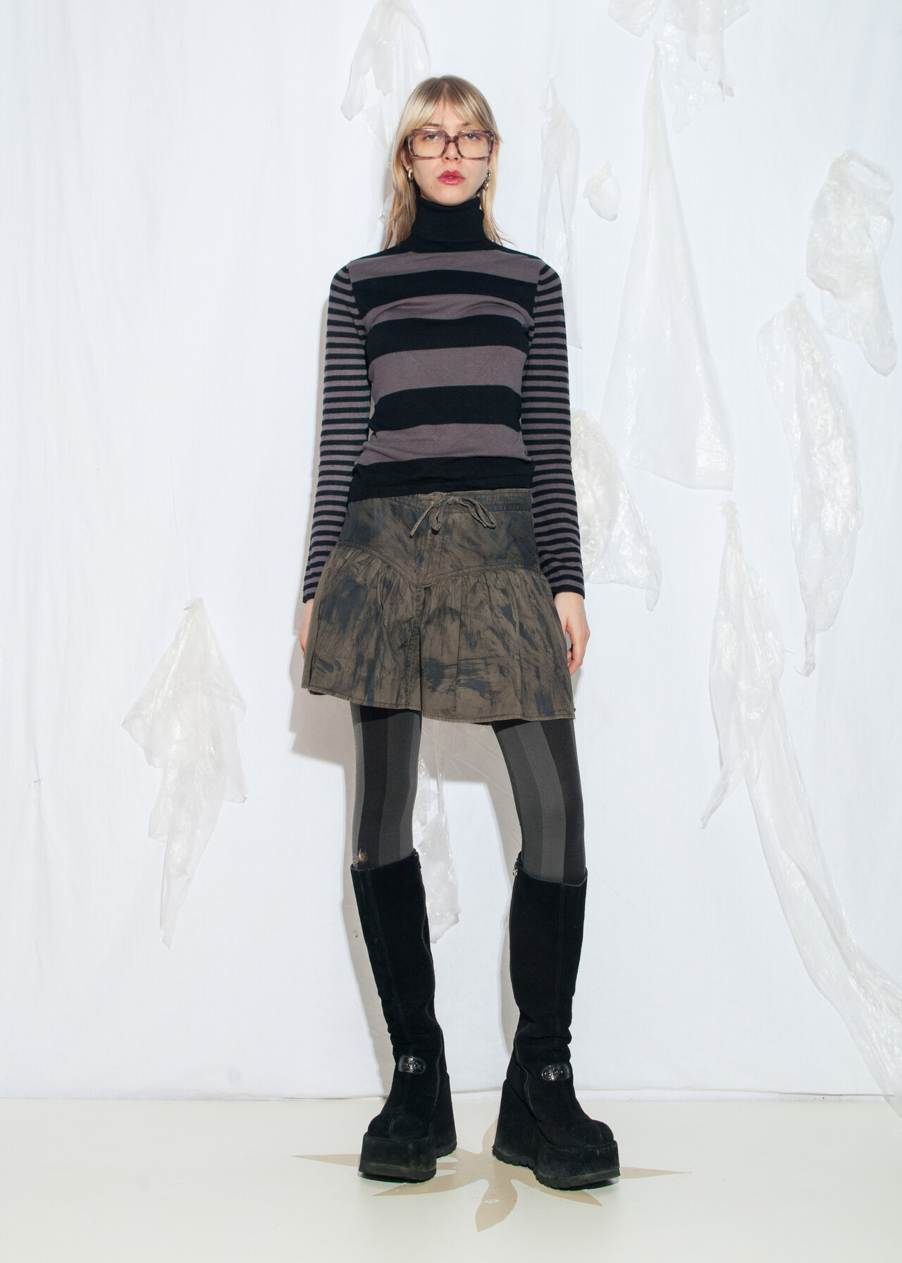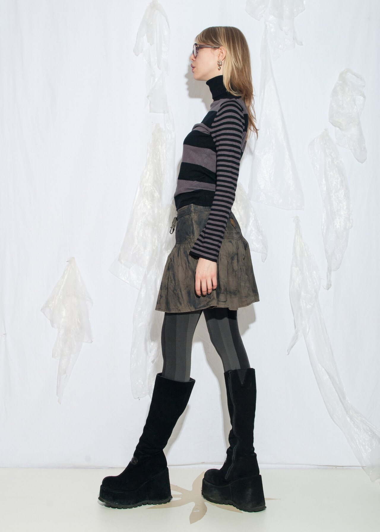 This Y2K vintage skirt is a reworked, hand-painted masterpiece that brings low-waisted grunge vibes to your closet.