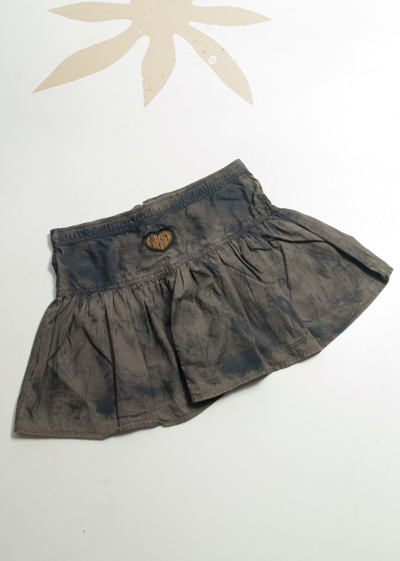 Reworked Vintage Y2K Hand Painted Mini Skirt in Khaki