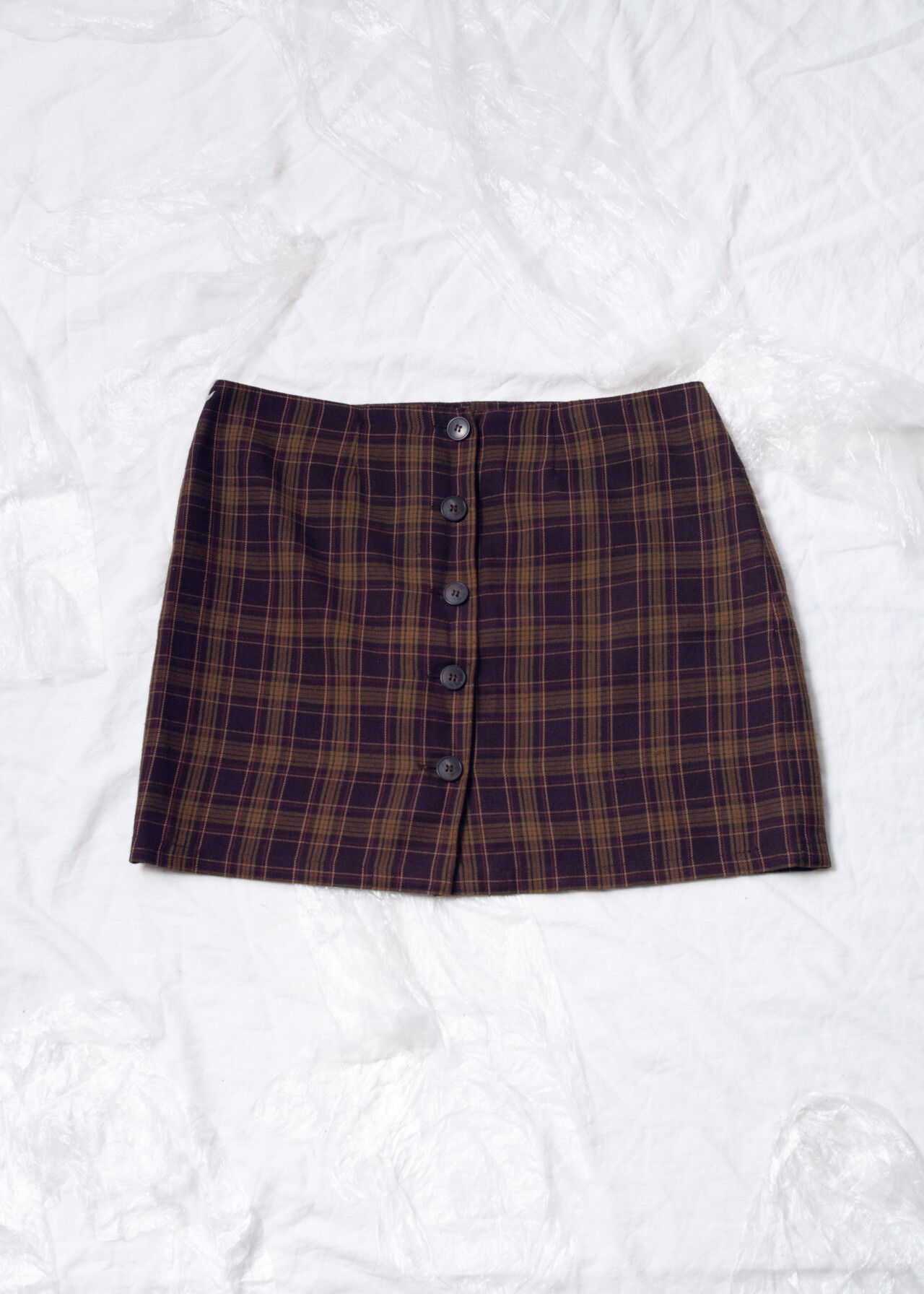 Vintage 90s Plaid Mini Skirt in Purple Brown
