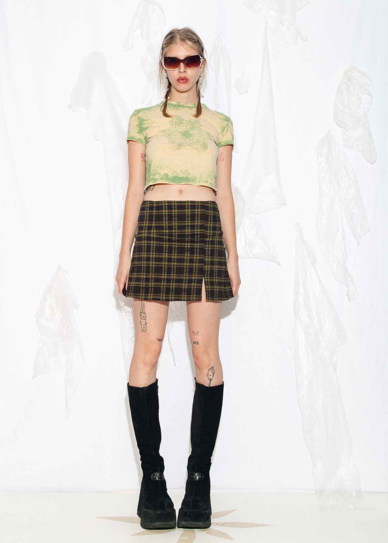 Tags: 90s vintage fashion, checked punk vibe, grunge outfit, micro skirt, office siren, plaid mini skirt, schoolgirl, side slit skirt, stretchy skirt, whimsi twee look, y2k style clothing