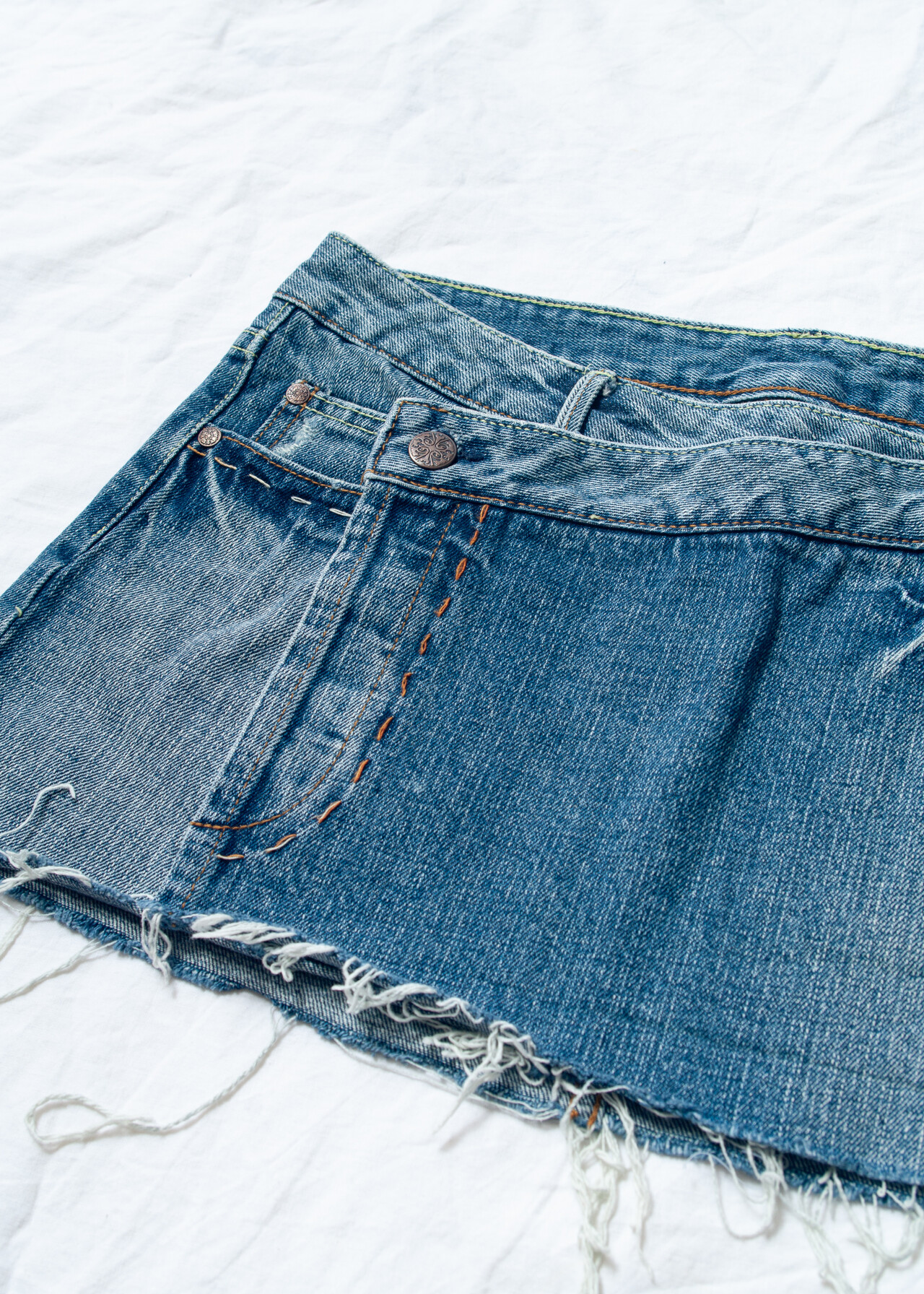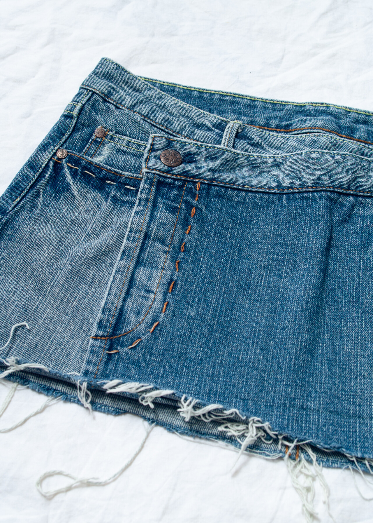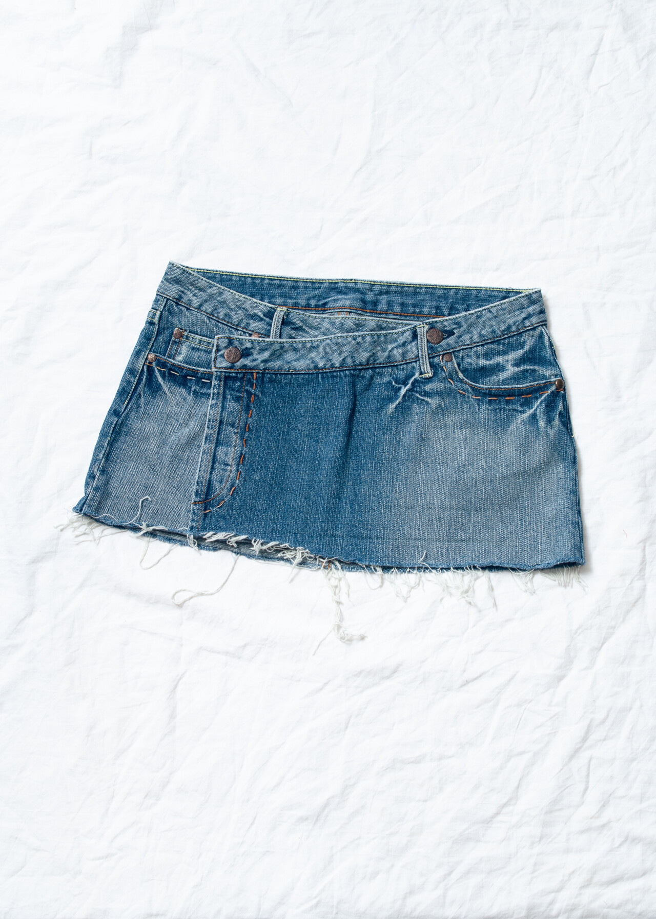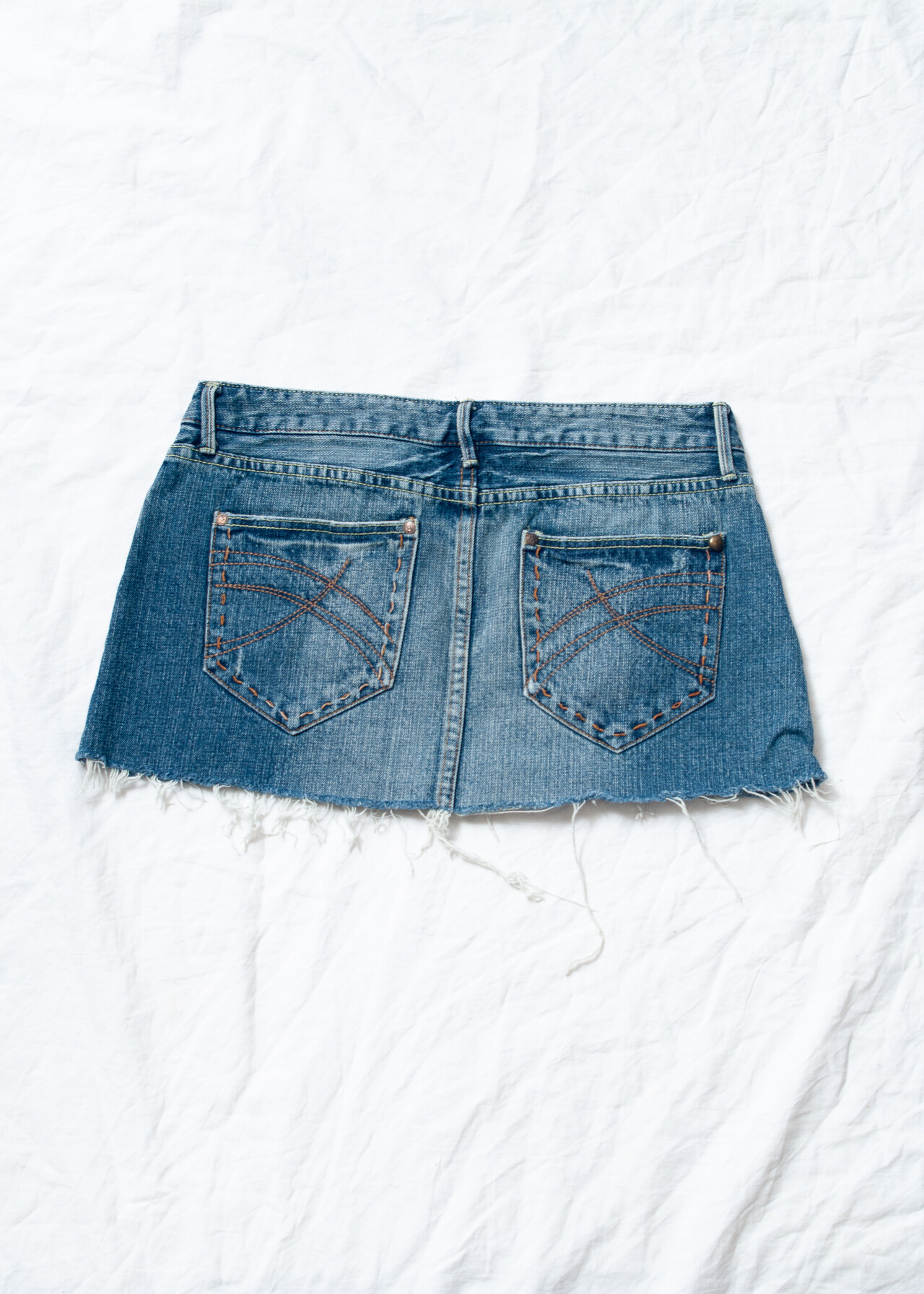 Be the first to review “Vintage Y2K Frayed Hem Denim Micro Skirt in Blue” Cancel reply
