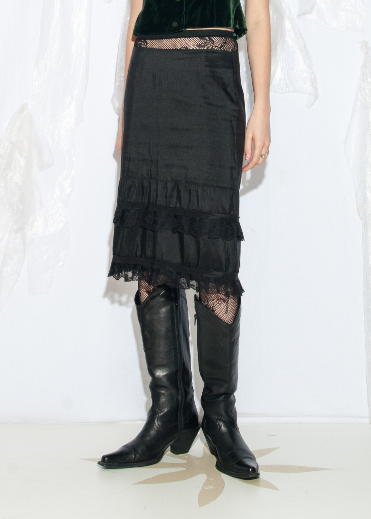 Tags: 2000s vintage fashion, European vintage, goth vampire look, lace skirt, low rise midi, low waisted bottoms, whimsical gothic, whimsigoth, y2k grunge outfit, y2k style clothing