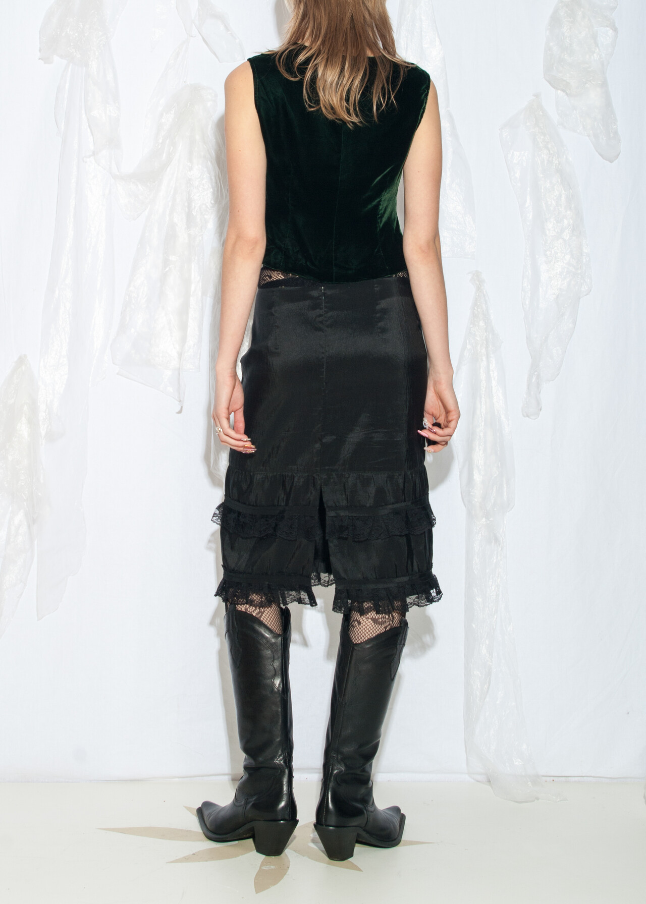 Vintage Y2K Frilly Lace Midi Skirt in Black