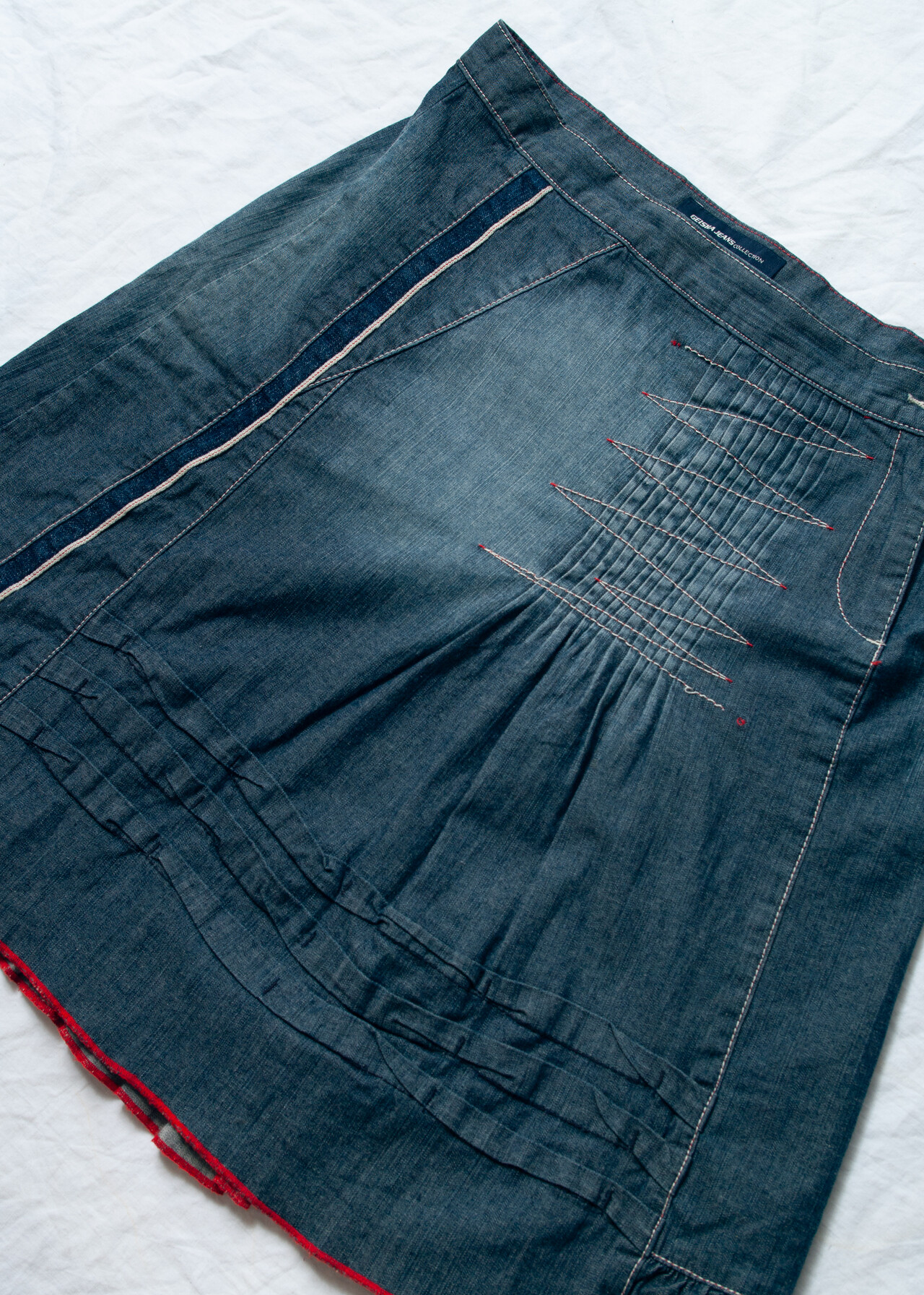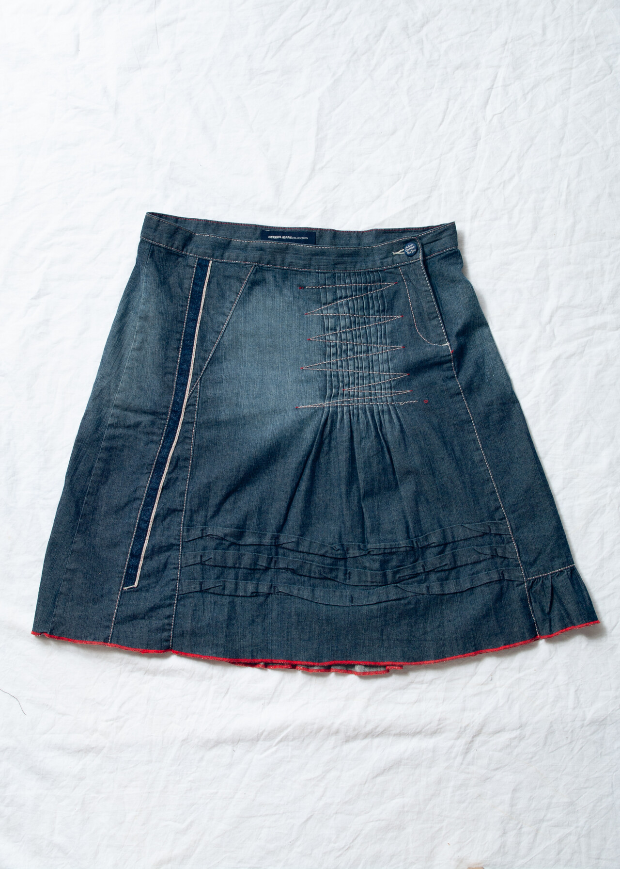 Vintage denim skirt 80s reworked cropped grunge skirt
