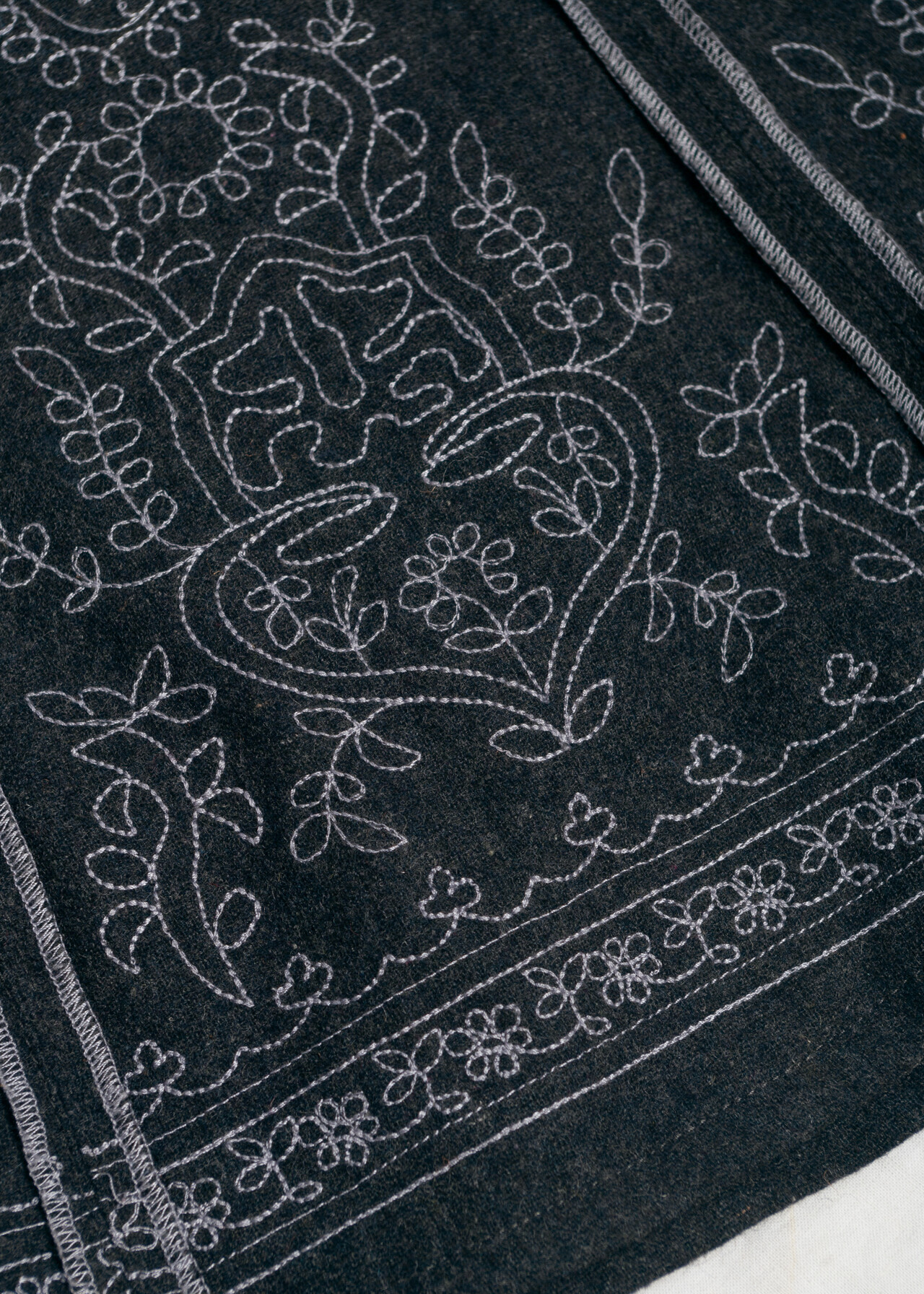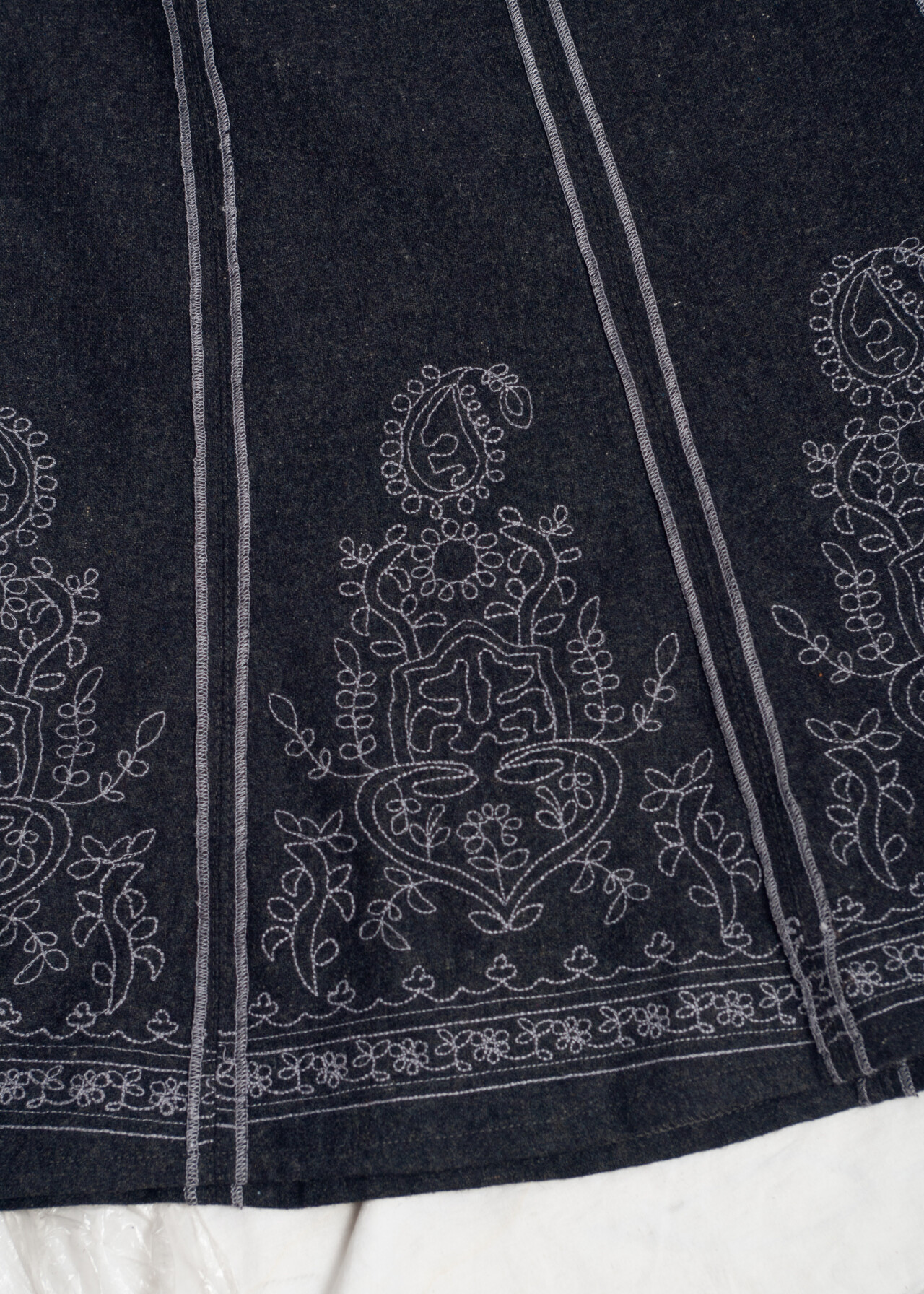 Vintage Y2K Grey Wool Blend Skirt with Folk Embroidery