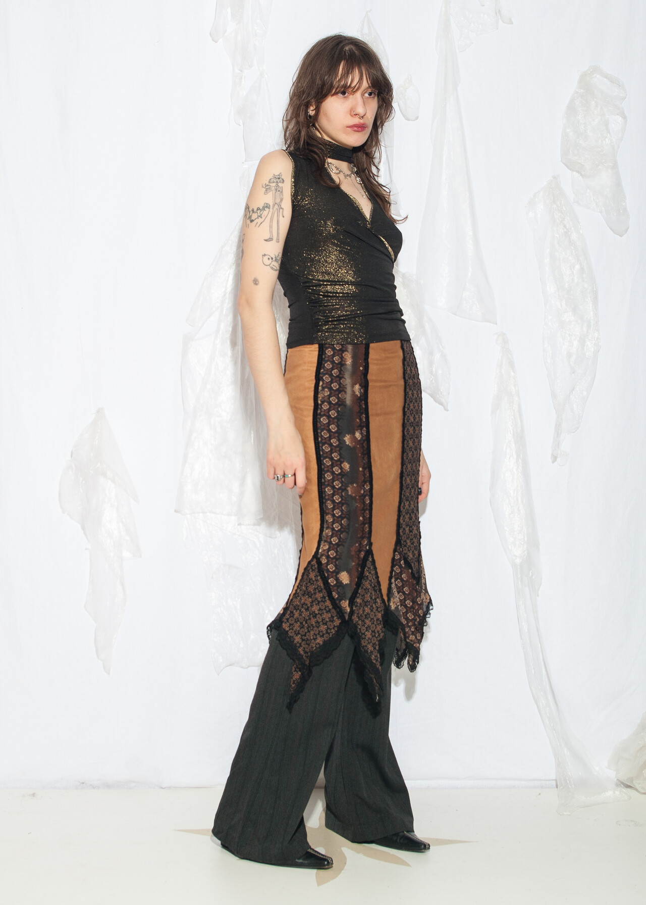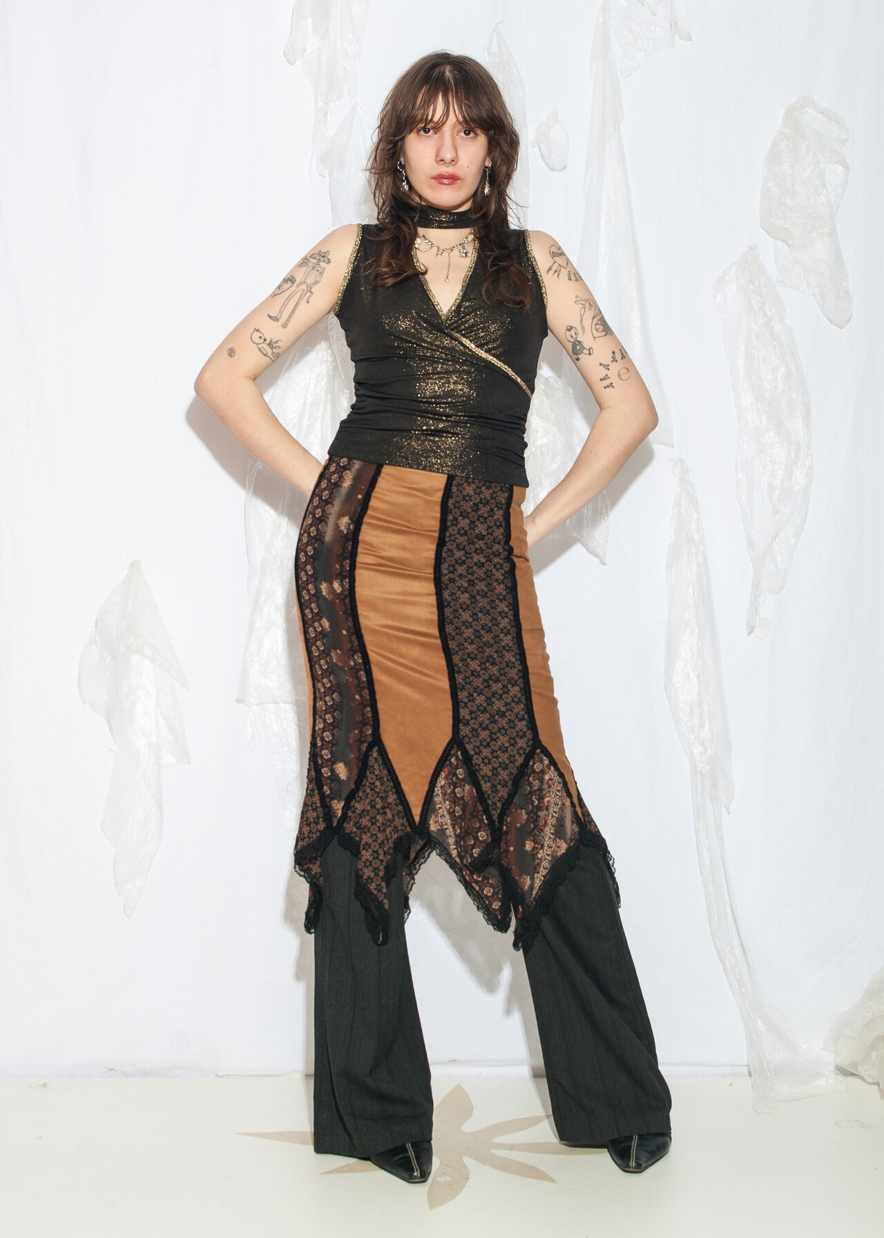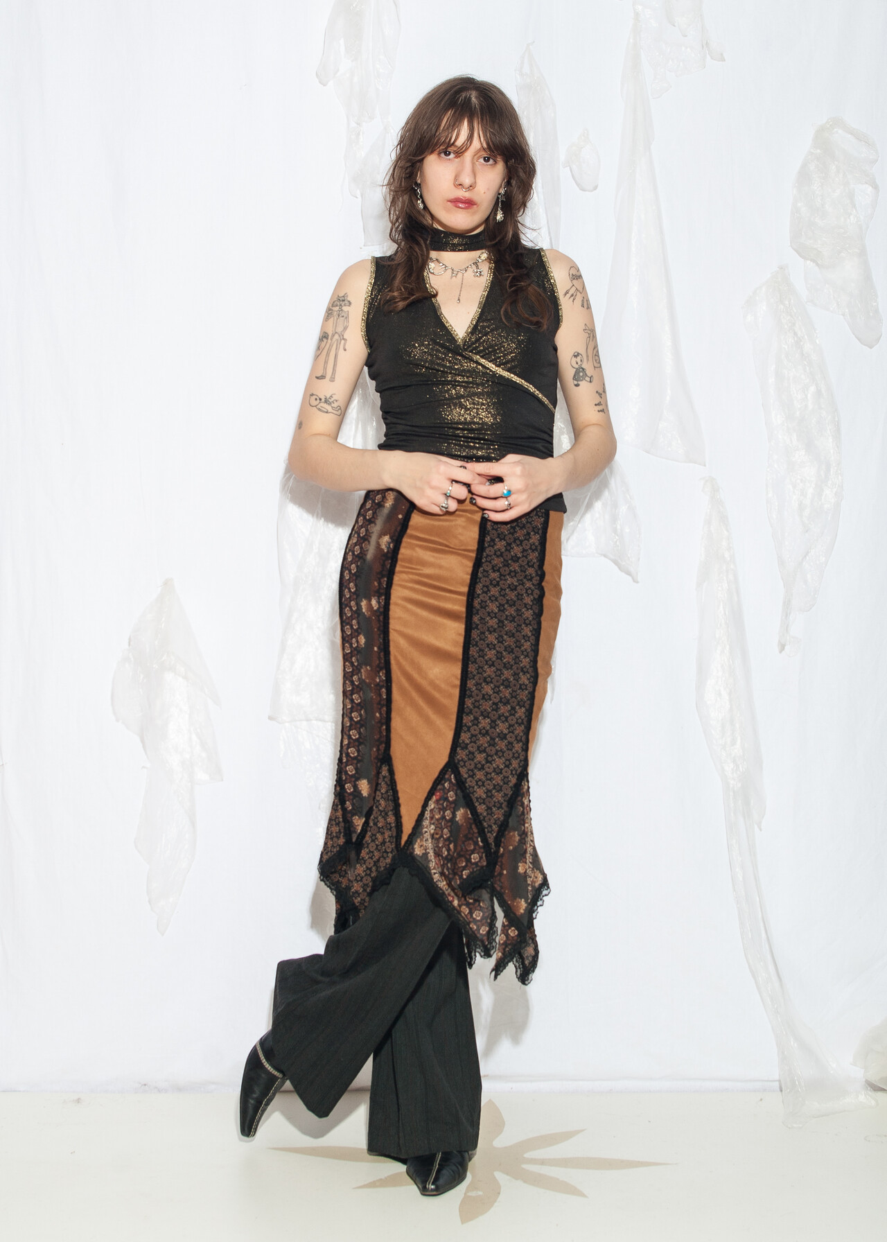 This Y2K vintage patchwork skirt by jad is a whimsigoth masterpiece, perfect for those days when you can’t decide between channeling your inner 2000s witch or just wanting to look effortlessly cool. With its brown and black midi style, this skirt is the fashion equivalent of a time-traveling hug.