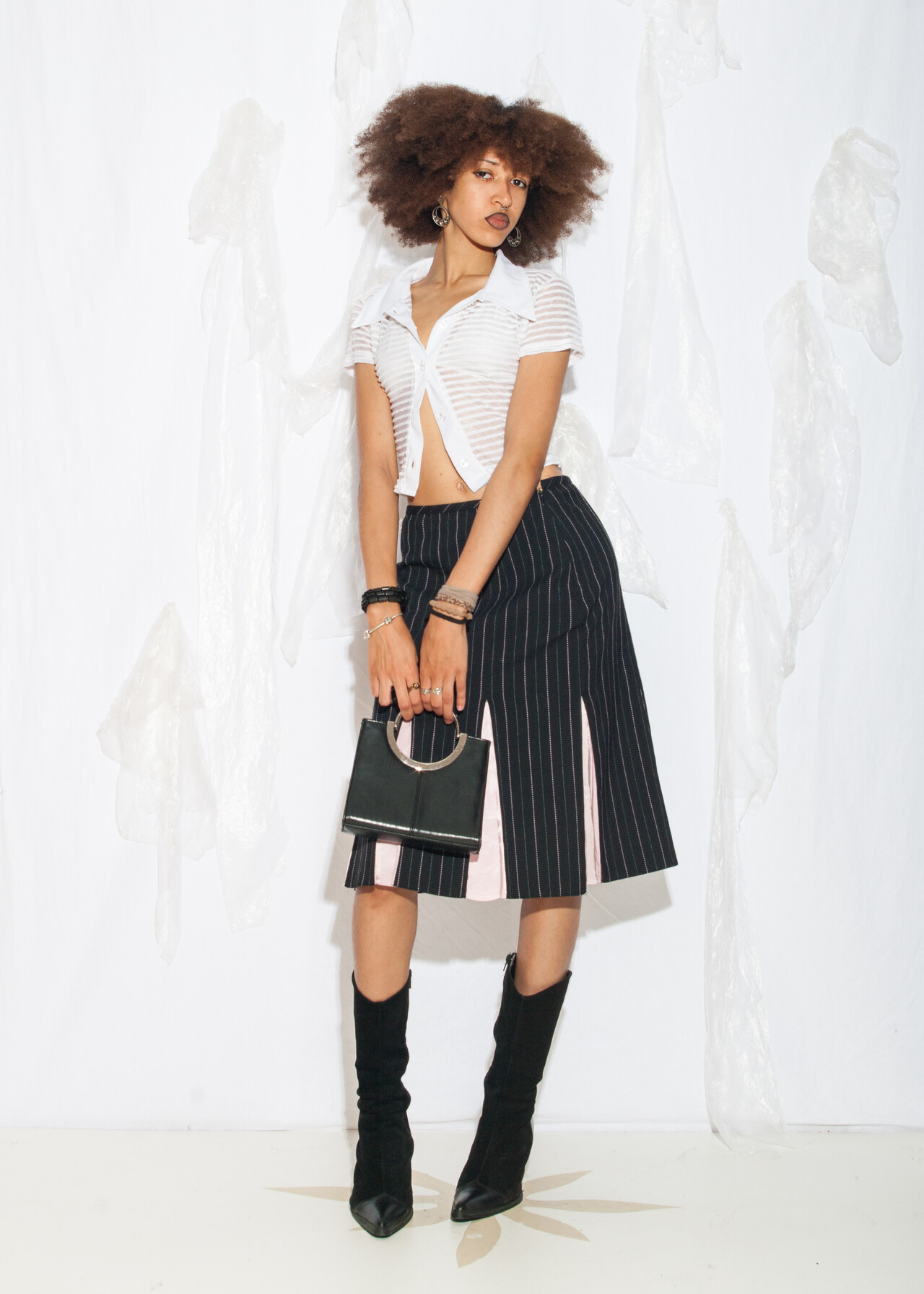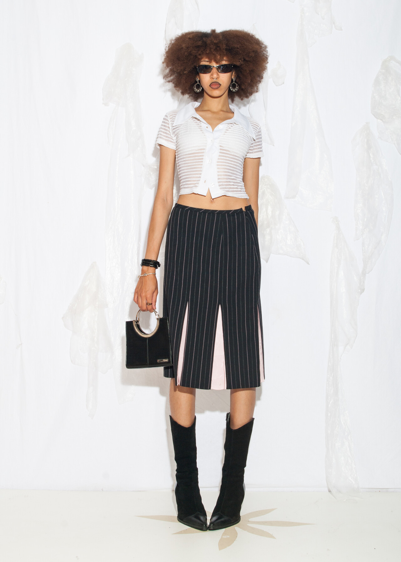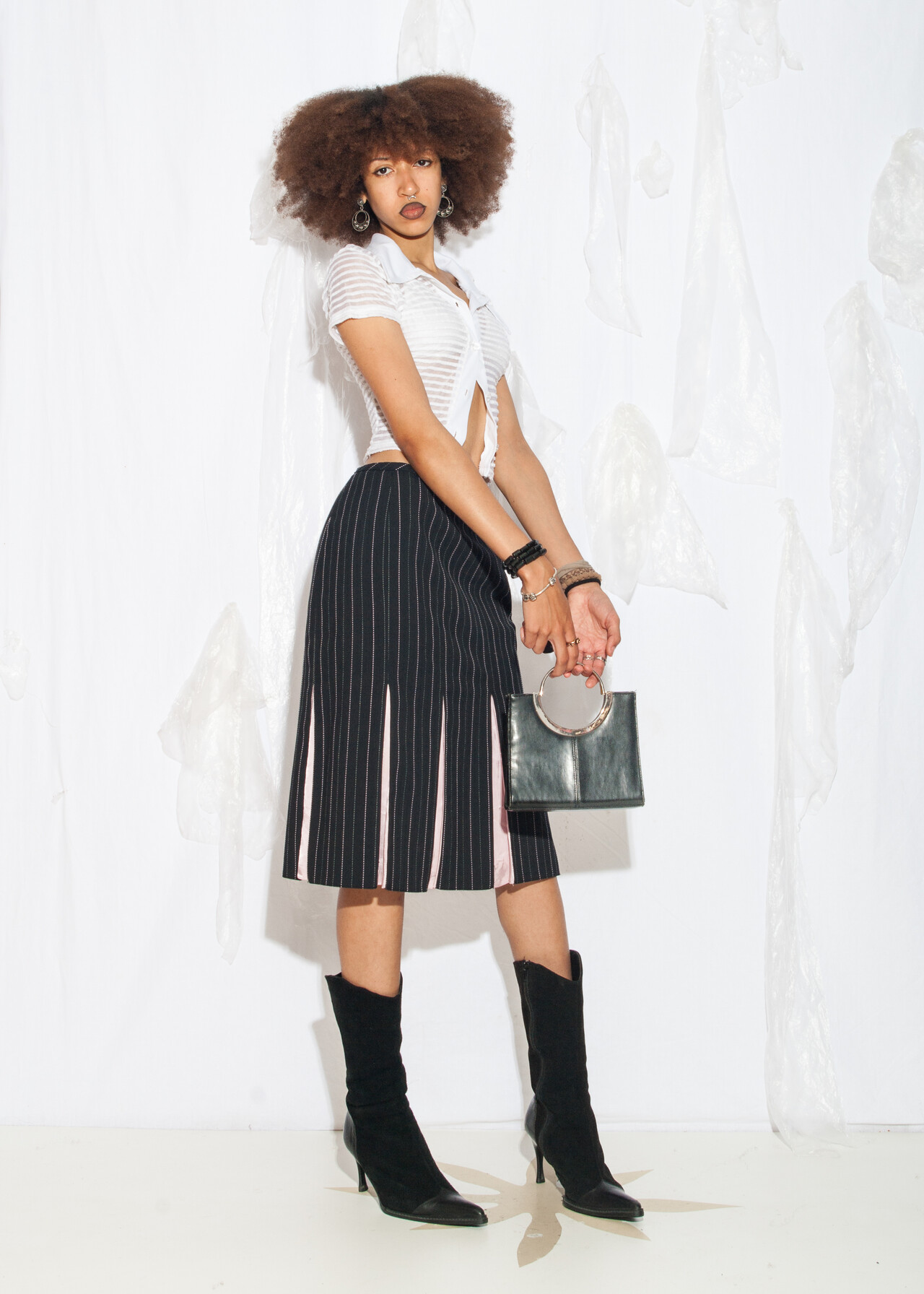 This Y2K vintage officecore skirt is the pinstriped piece that’s ready to make your workweek feel like a 2000s throwback party!