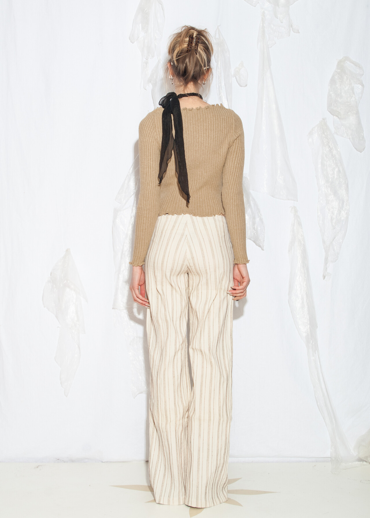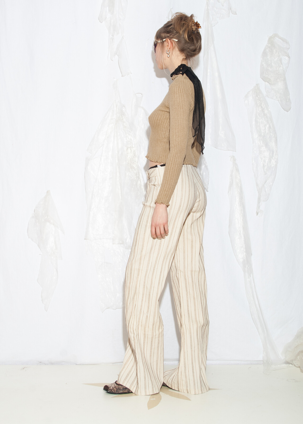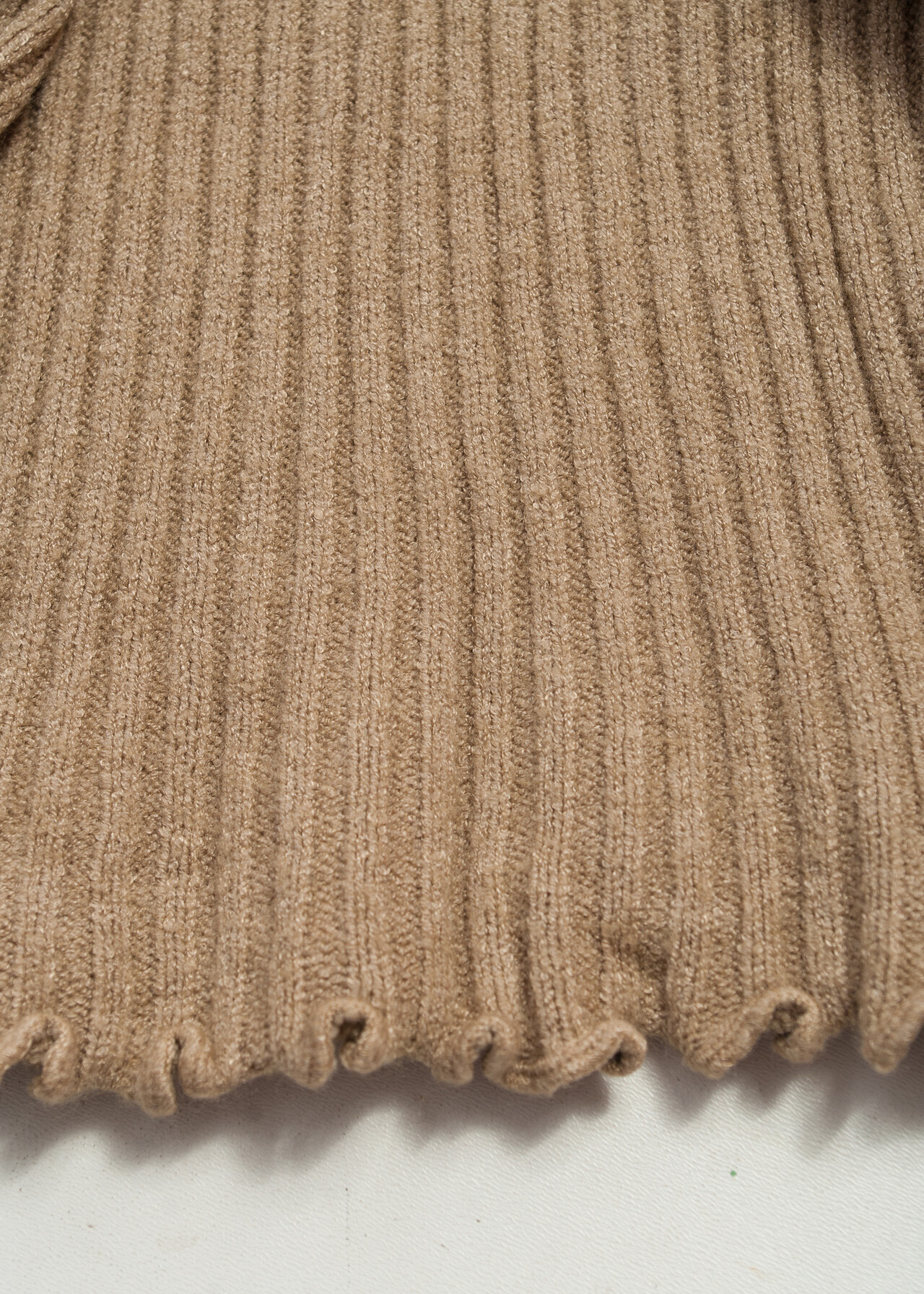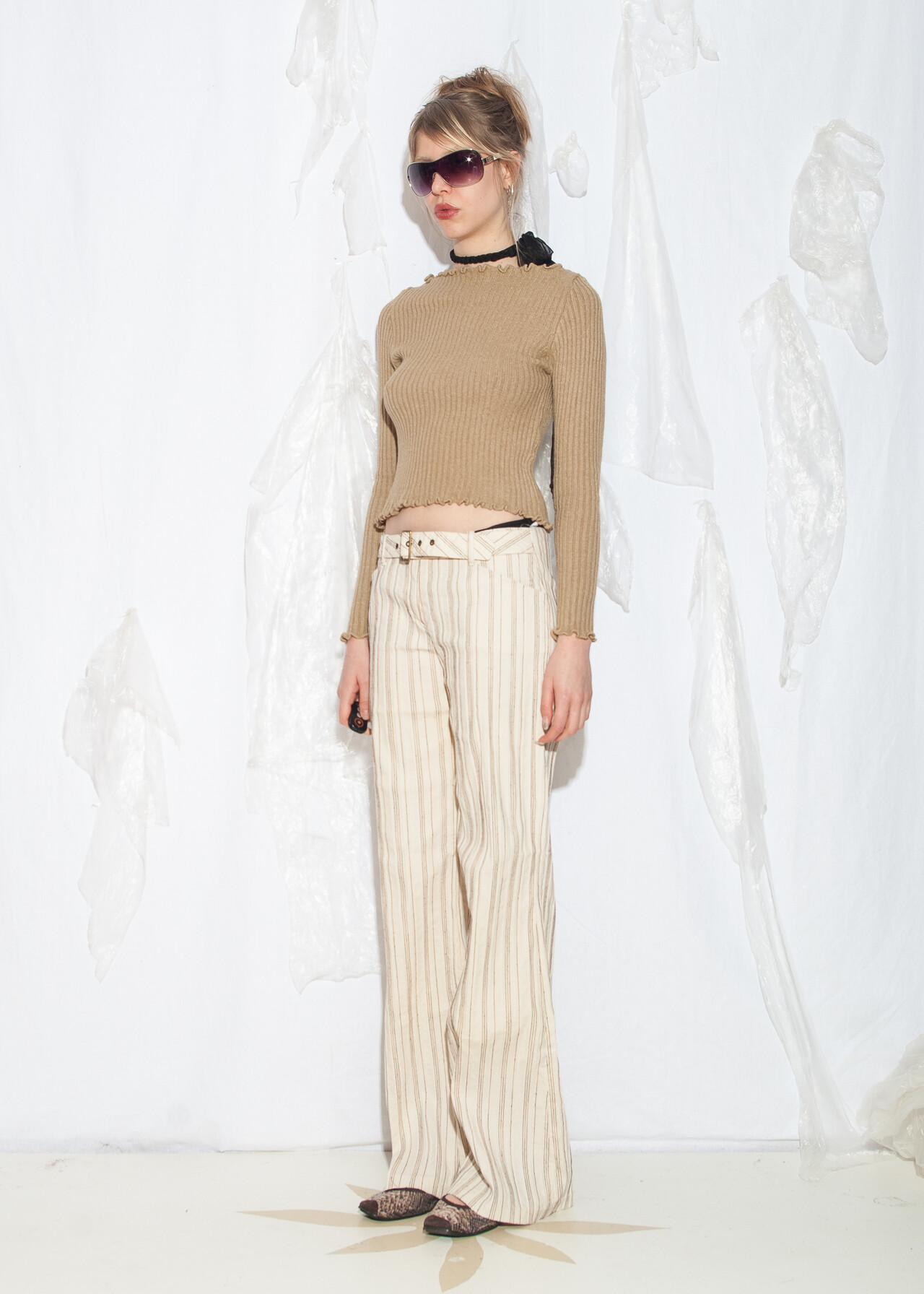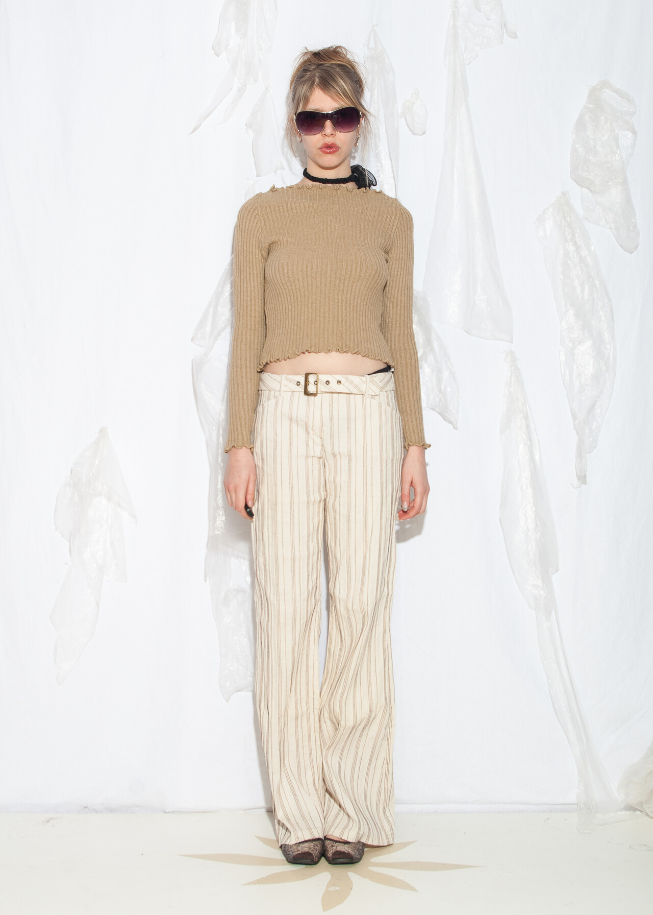 This 90s vintage rib knit top is the ultimate throwback, with a sassy lettuce hem that’ll have you feeling like you’re in an episode of Friends. Made in Italy, this slim fit jumper is basically your ticket to beige-tastic nostalgia.