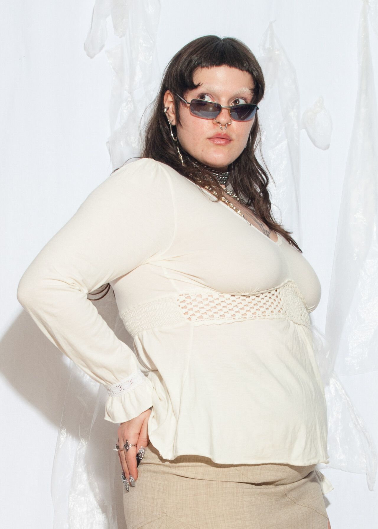 This Y2K vintage top, with its long sleeves and crocheted detail, is perfect for channeling your inner early 2000s icon. It’s your ticket to reliving the cotton comfort of a simpler time, no time machine required!